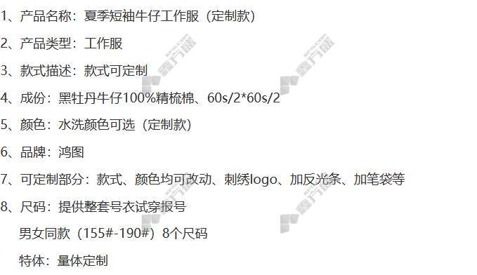 hongtu summer short-sleeved denim work clothes HT-NZ03-175 HT-NZ03-155