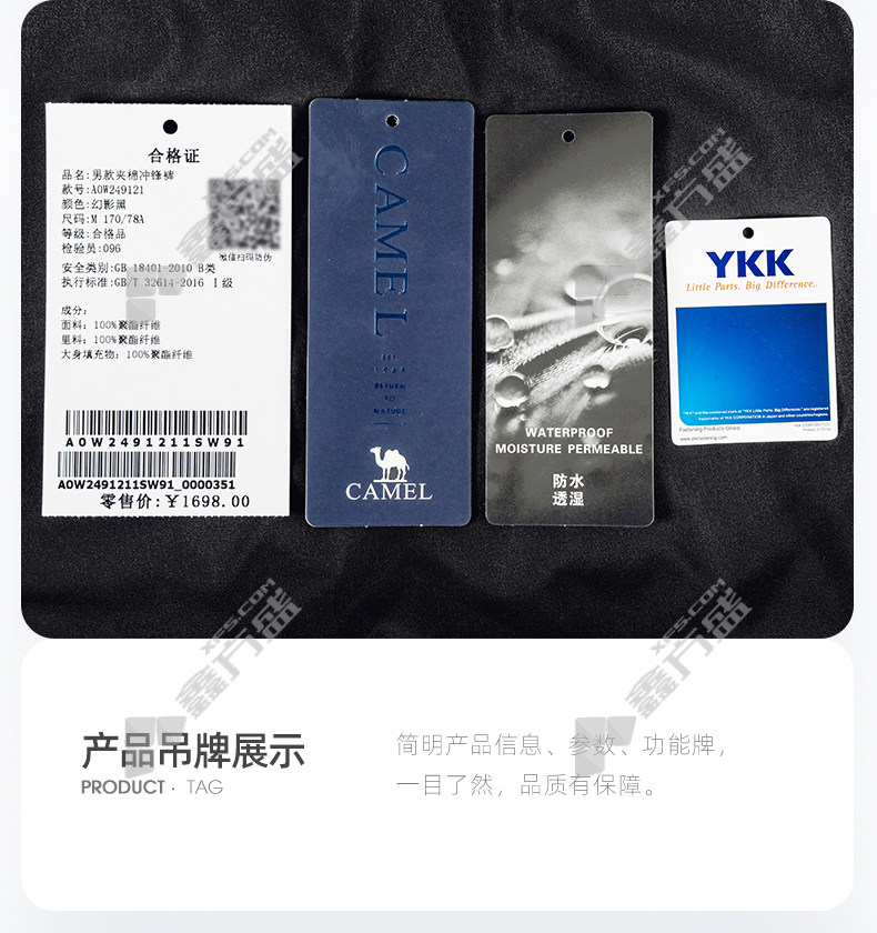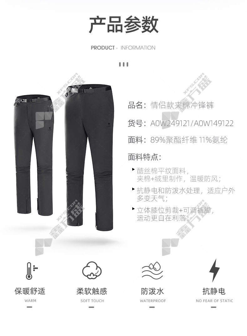 camel outdoor ski pants autumn and winter velvet warm mountaineering water-repellent padded jackets XXL code phantom black LTA0W249121 S code /phantom black /LTA0W249121