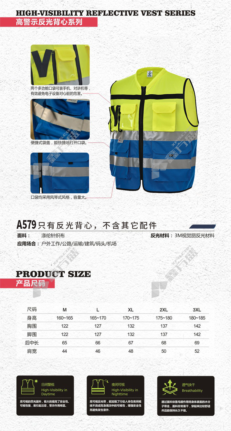 uncle an JJ-A579 multifunctional reflective vest XXL code yellow color blue JJ-A579 M code /yellow color blue /JJ-A579