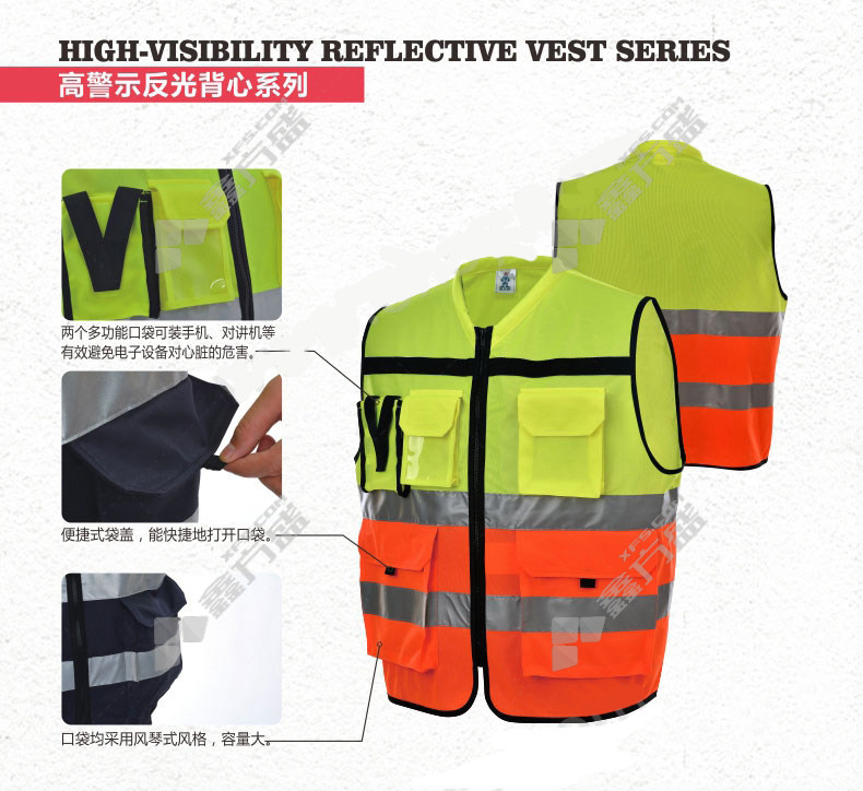 uncle an high warning reflective vest XXXL code fluorescent yellow and orange JJ-A856 M code /fluorescent yellow and orange /JJ-A856