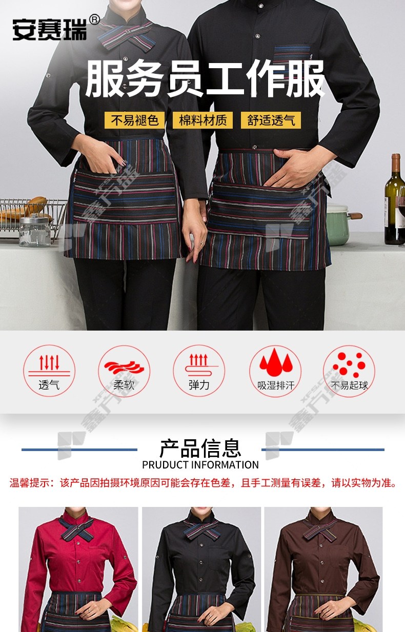 ansery women's coffee-colored waiter work clothes 3 F00116 3XL code brown color with apron and hat 3 F00113/L code /brown apron hat
