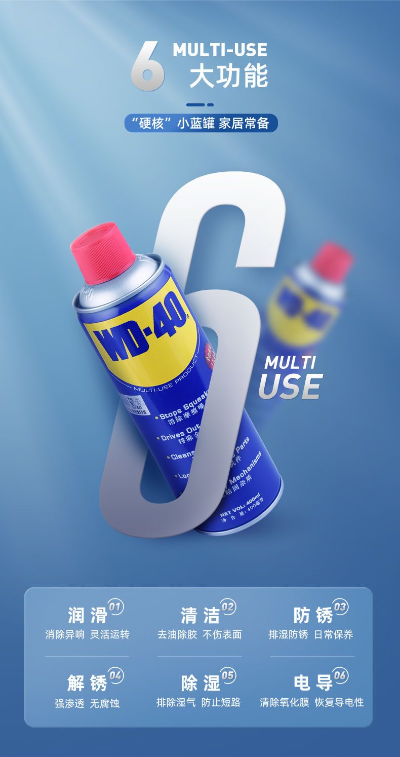 wd40用了很久了,锁眼、门润滑,钢制工具保养除锈都可以用,效果很好。送了百洁布和一小块干布,配合wd40用很方便