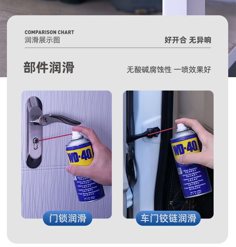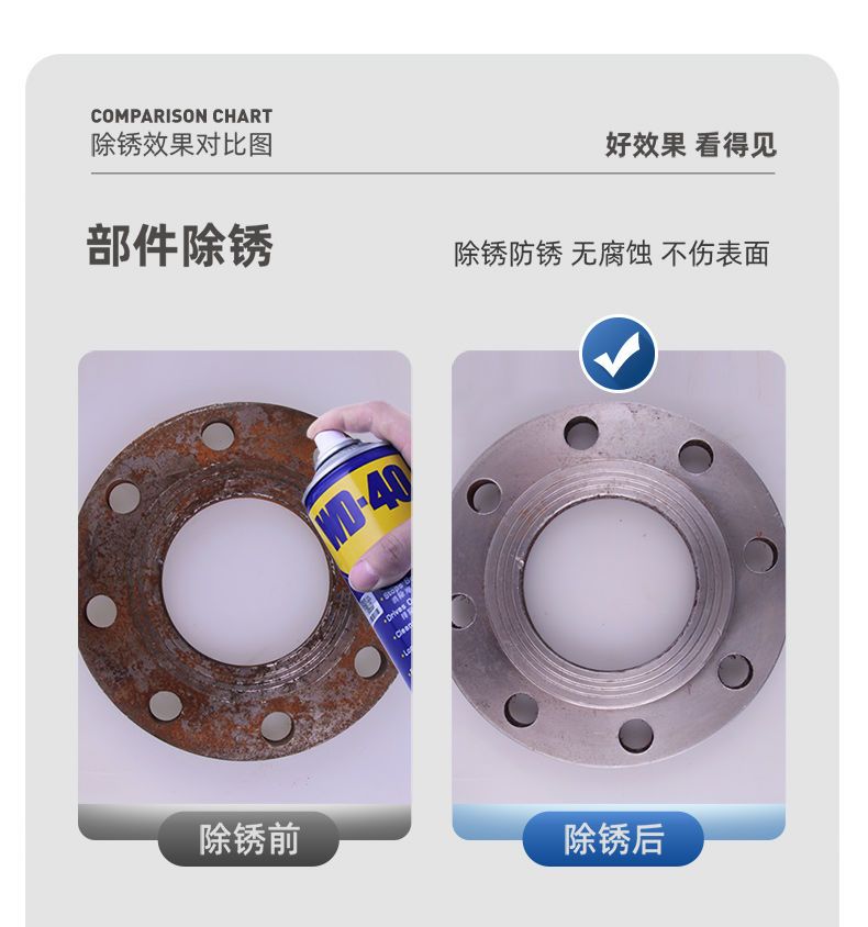 效果很好,好用,清洗干净,,服务态度很好,方便,物美价廉,早就听说过wd40,这次买来用用,果然名不虚传,得长好用,推荐大家购买![微笑][微笑]