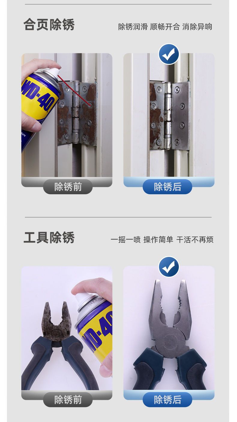 宝贝收到了,使用了一下,效果很好和之前购买的一样,这是第二次购买了,这款WD-40产品用途很广。家用必备神器。