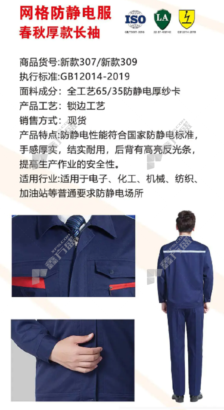 shengrongda mesh spring and autumn long-sleeved anti-static clothing HR-309 2XL/180 grey HR-307/S/160/dark blue