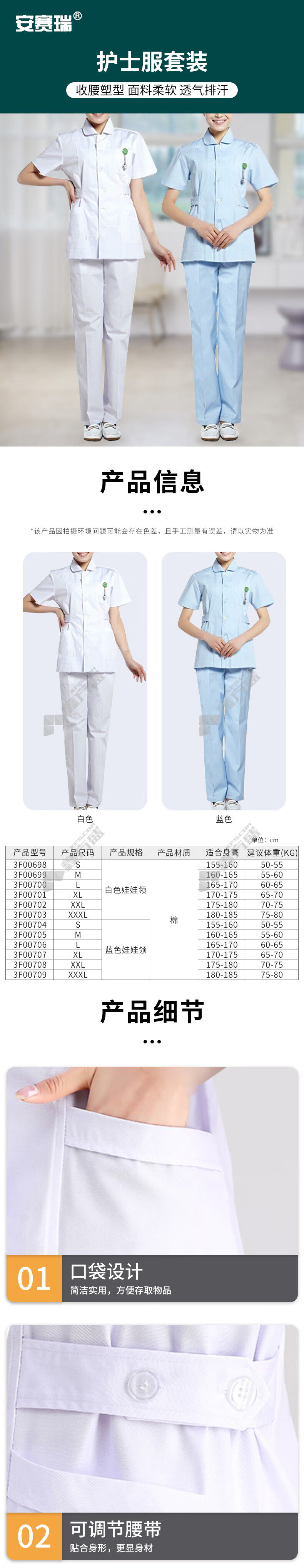 ansery split typewhitenurse uniform set 3 F00699 M code white 3 F00698/S code /white