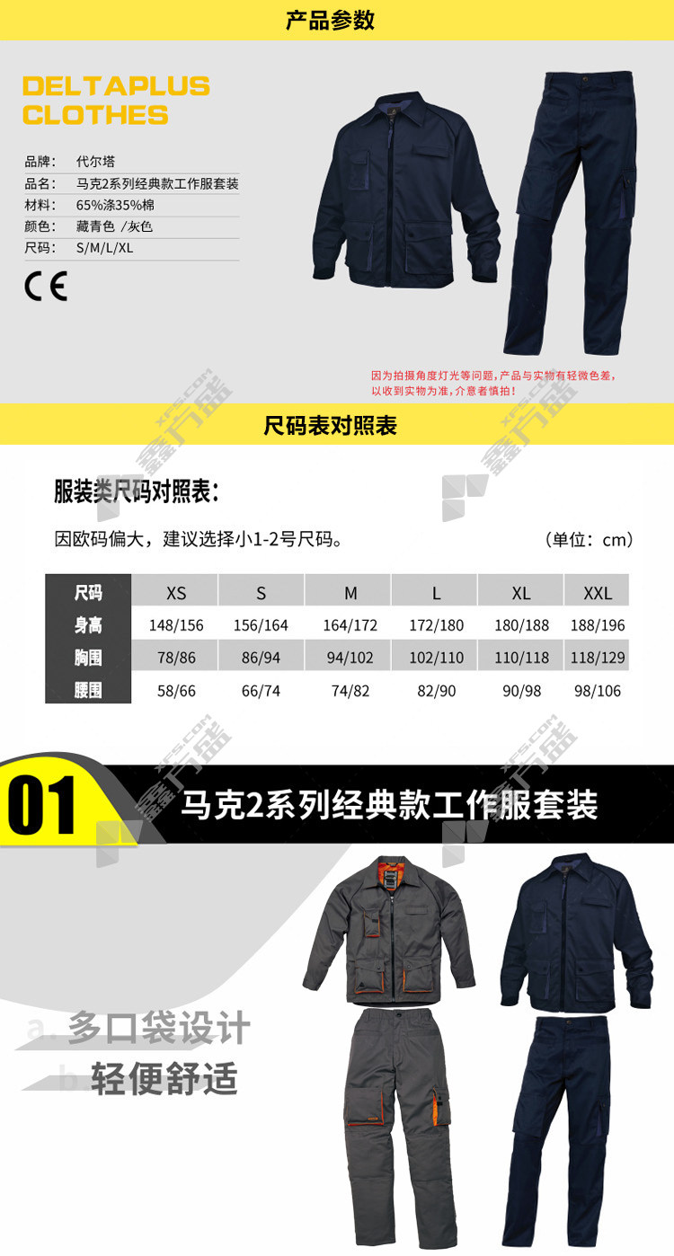 deltamark 2 series classic overalls 405109 XL gray 405109 /S/navy blue