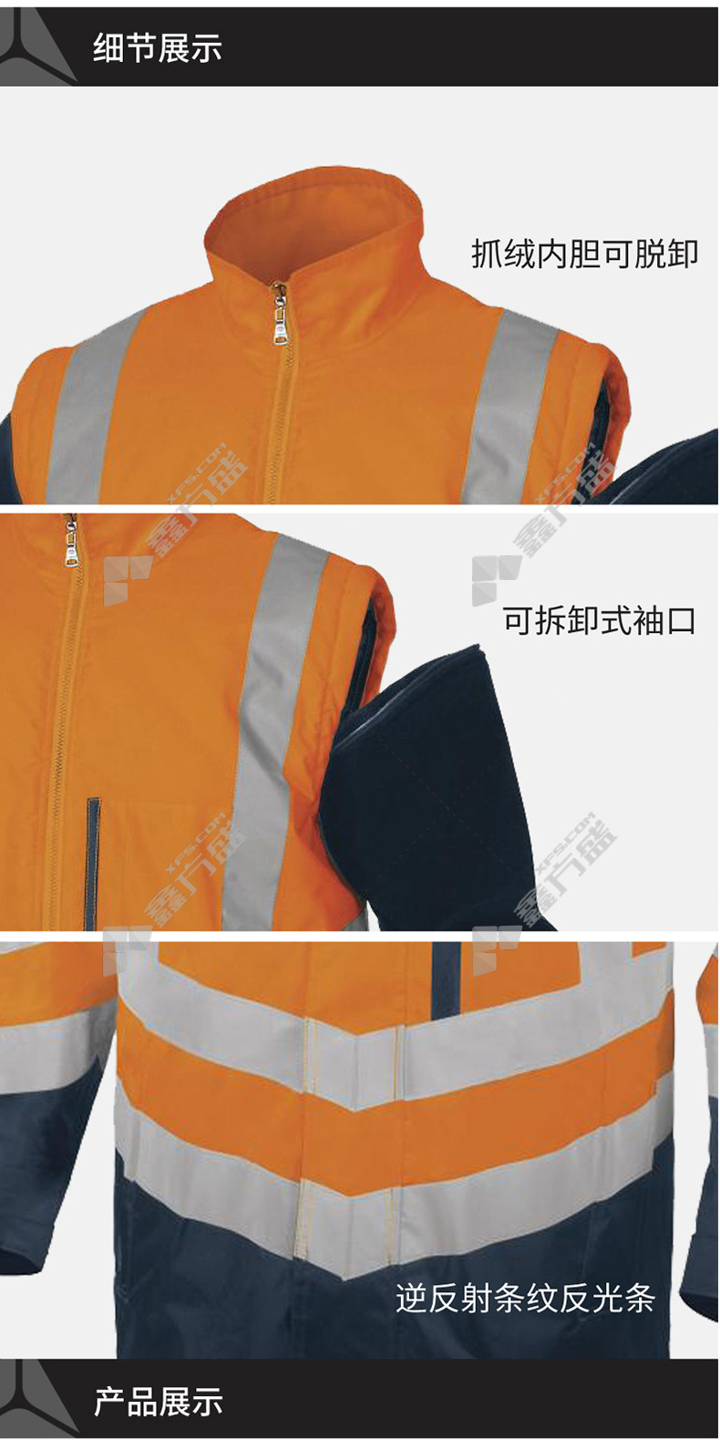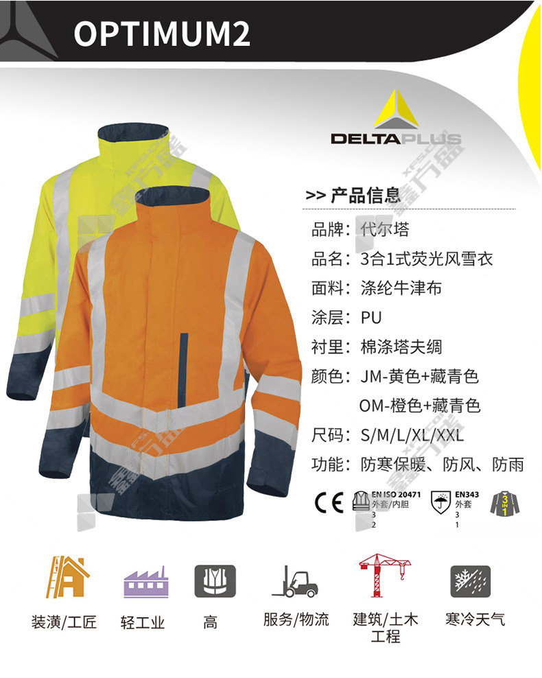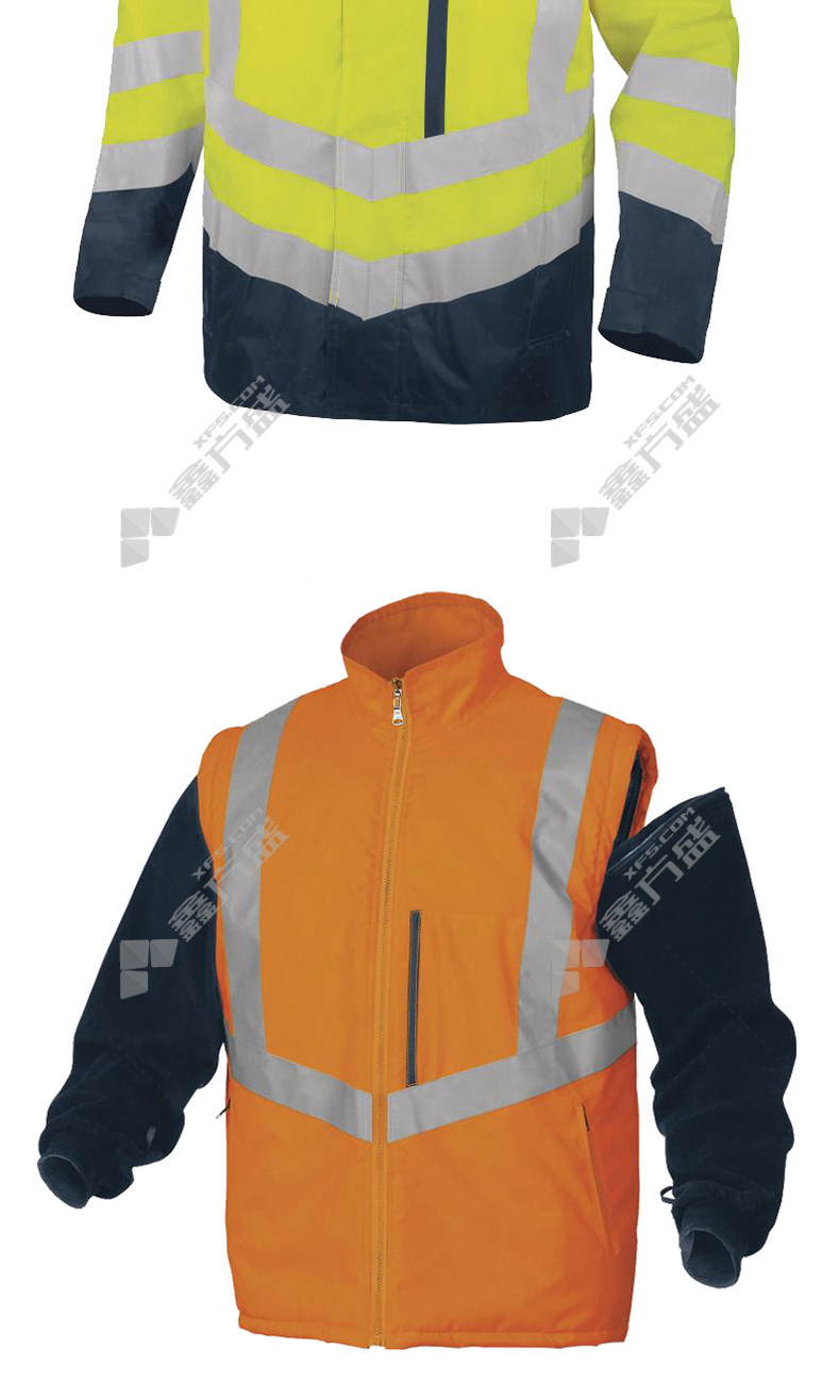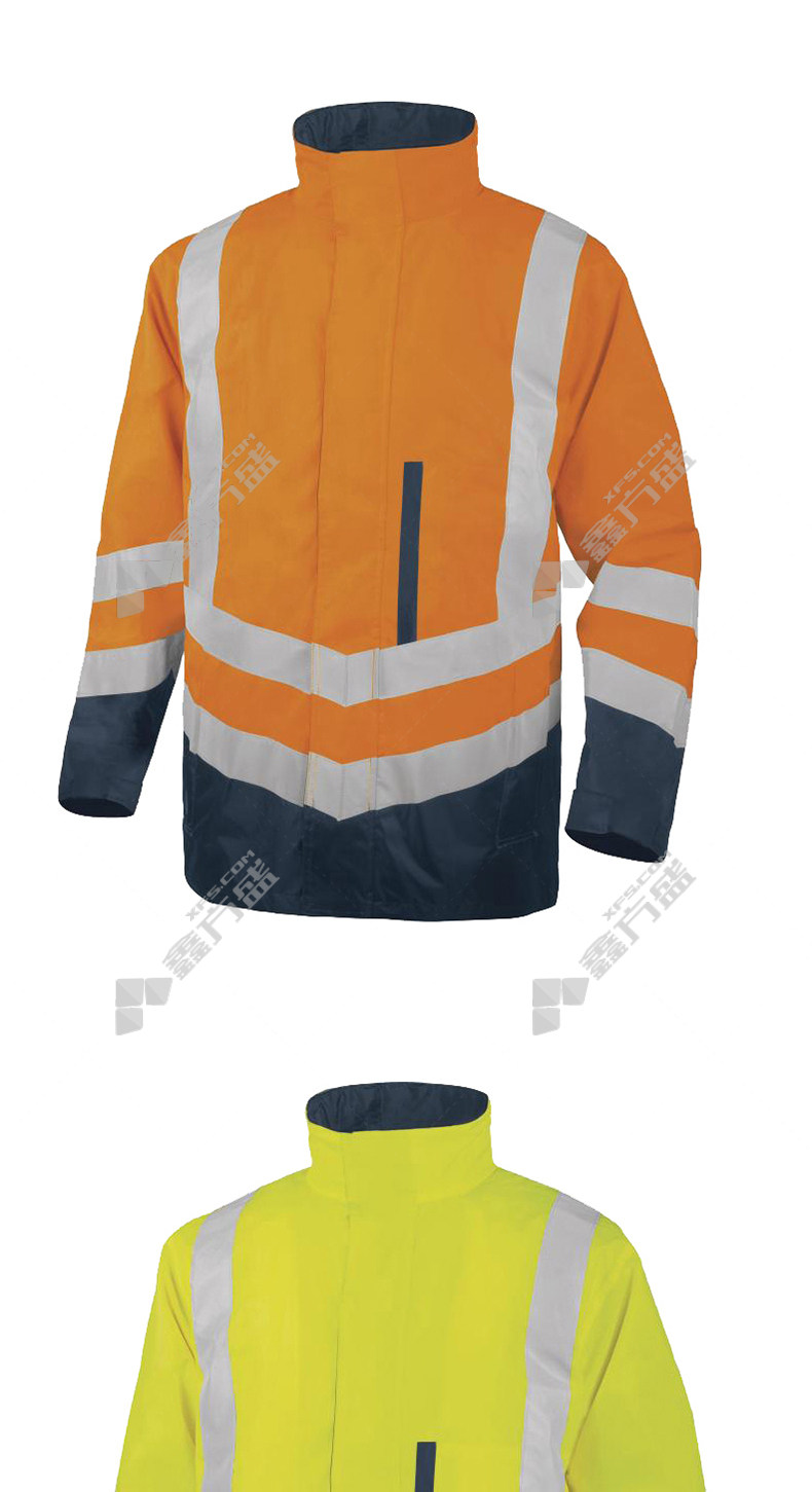 delta 3-in-1 PU coated polyester oxford fabric fluorescent windbreaker S orange color +navy blue 404010 S/yellow navy blue /404010