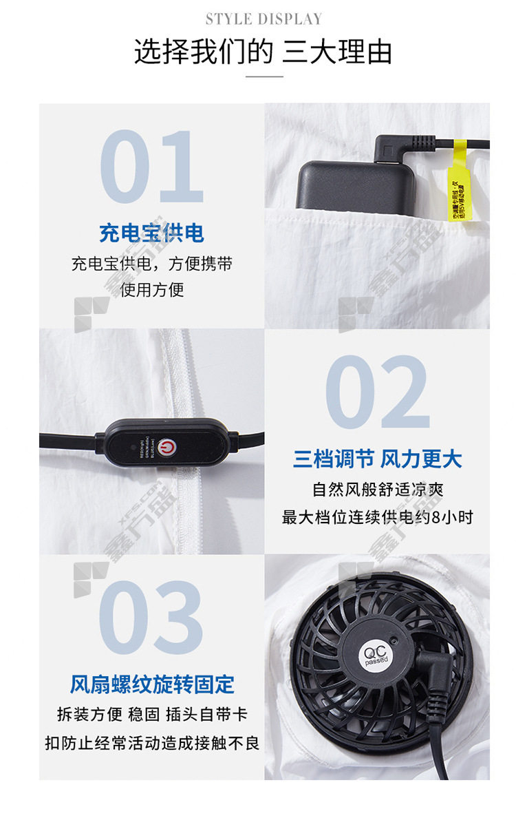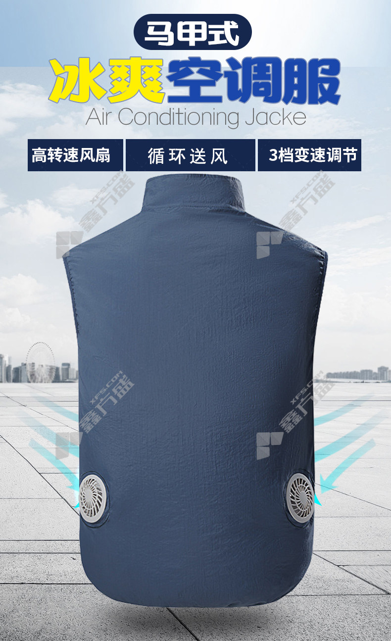 moufu 6253 summer cooling and heatstroke prevention vest (clothes +fan) 6253 L code light blue 6253 /S code /white