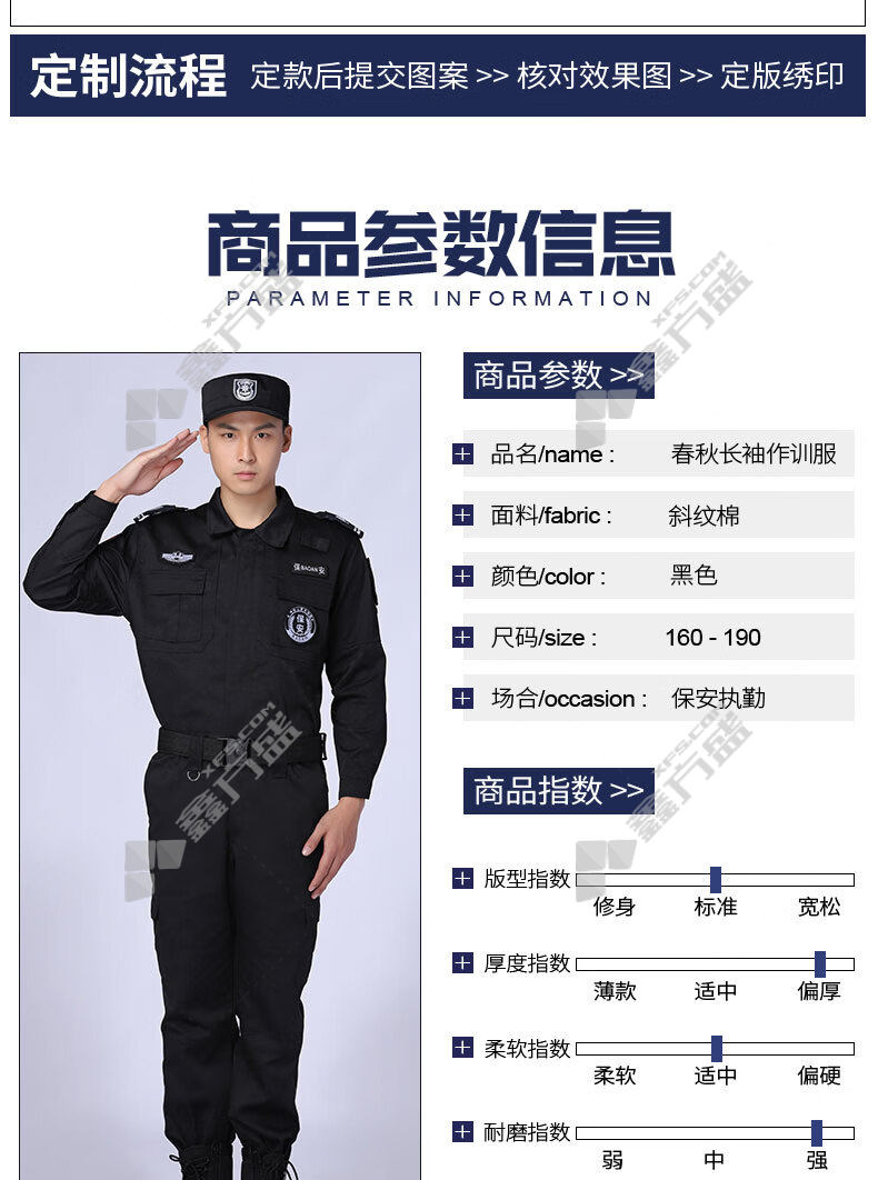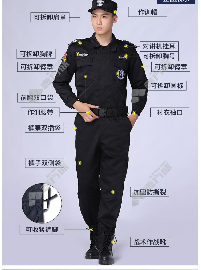 moufu 651 spring and autumn security work clothes summer long-sleeved suit polyester 175code black polyester /160code /black