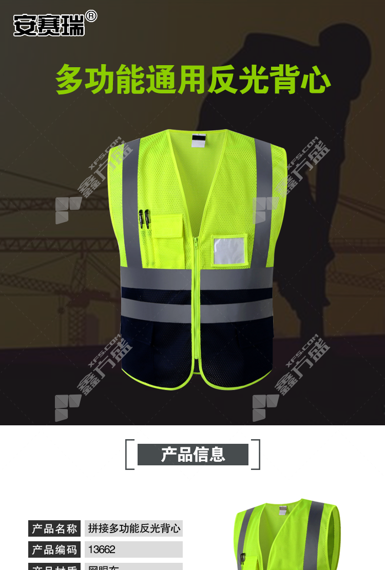 ansery 13662 spliced multi-functional universal reflective vest 13662 one size fits all, no specifications