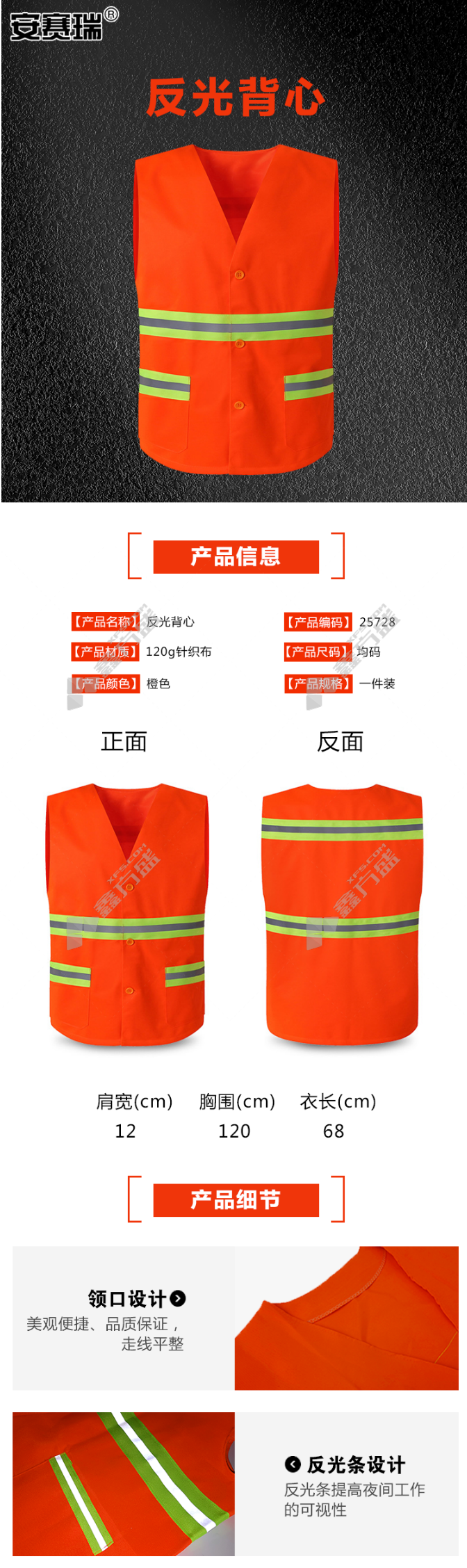 ansery 25728 button style night reflective vest 25728 one size fits all, no specifications
