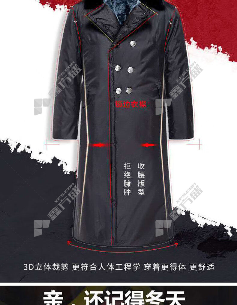 moufu plus reflective strips for cold protection and lengthened knee-length cotton coat 9396, one size fits all, black, no specifications