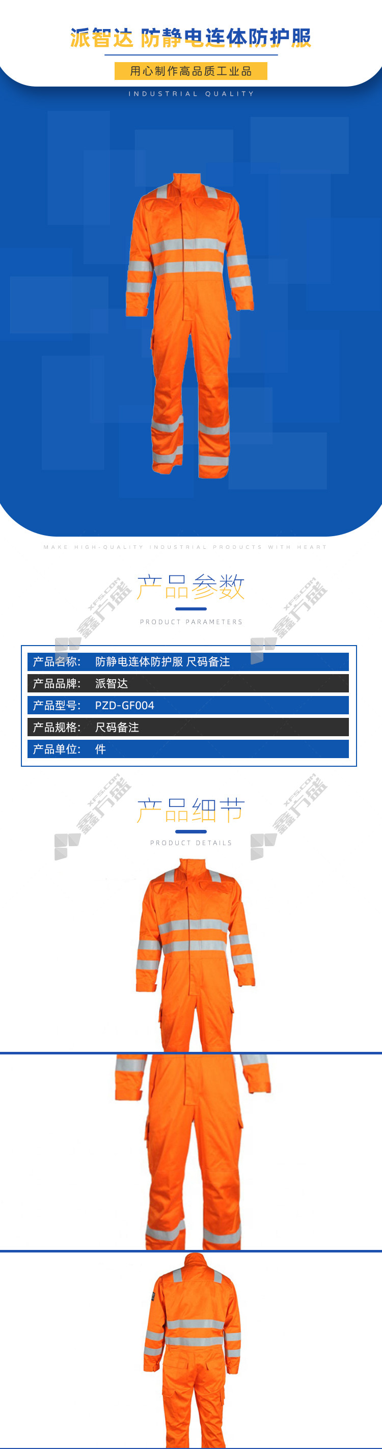 paizhida anti-static protective clothing size notes orange PZD-GF004 no specifications