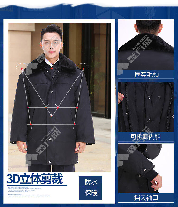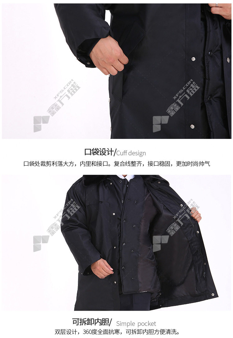fei naisheng extended cashmere winter cold-proof cotton coat FNS-00380 175 black FNS-00377/160/black