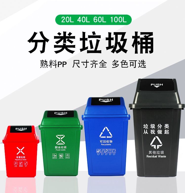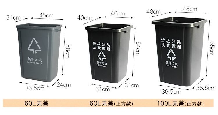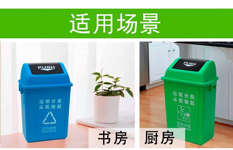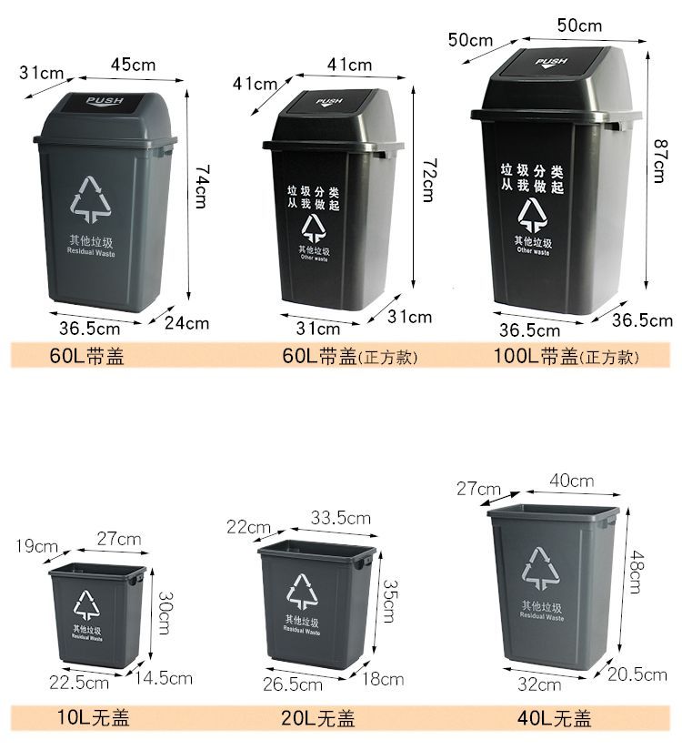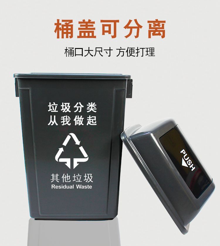 plastic waste classification trash can with lid, shake lid, flip lid, kitchen, outdoor property, school, no lid, large size 25 gray [other garbage] +with cover】10 CF