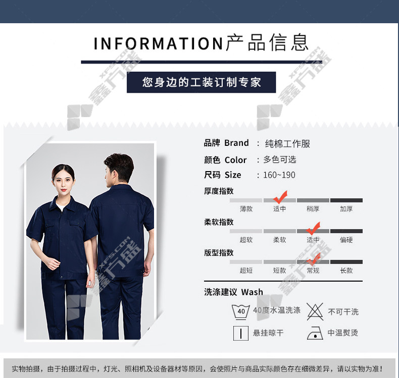 ingejia summer pure cotton breathable labor protection work clothes QCCGYJ6013171 3XL code royal blue QCCGYJ6013171/S code /navy blue