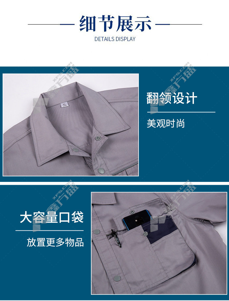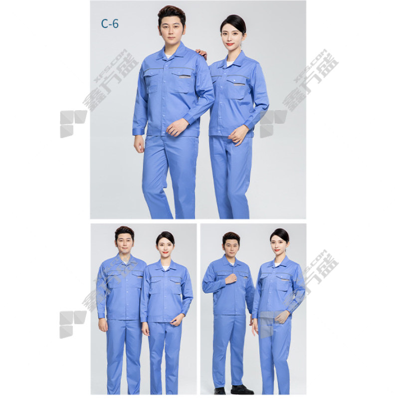 topray C6 summer polyester-cotton fine twill short-sleeved work clothes 165 light medium blue 160 /light medium blue