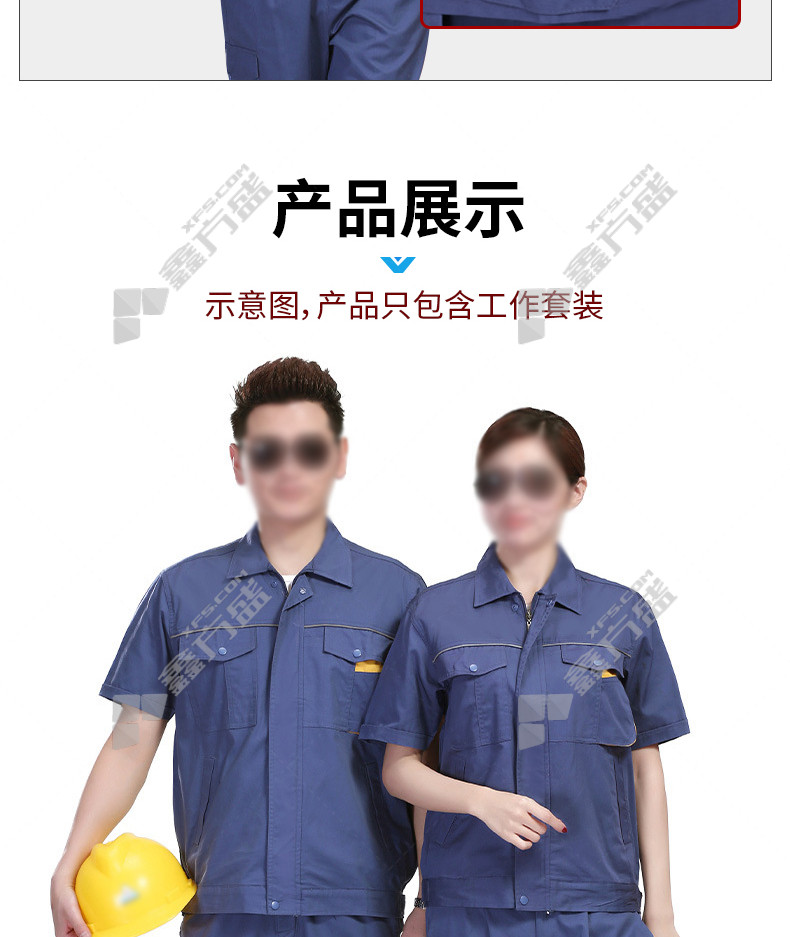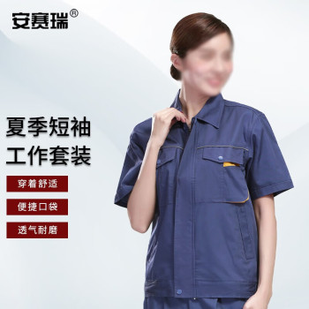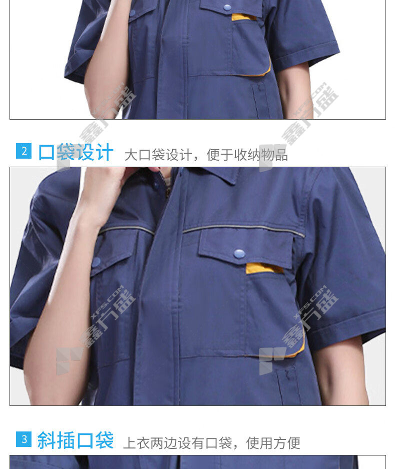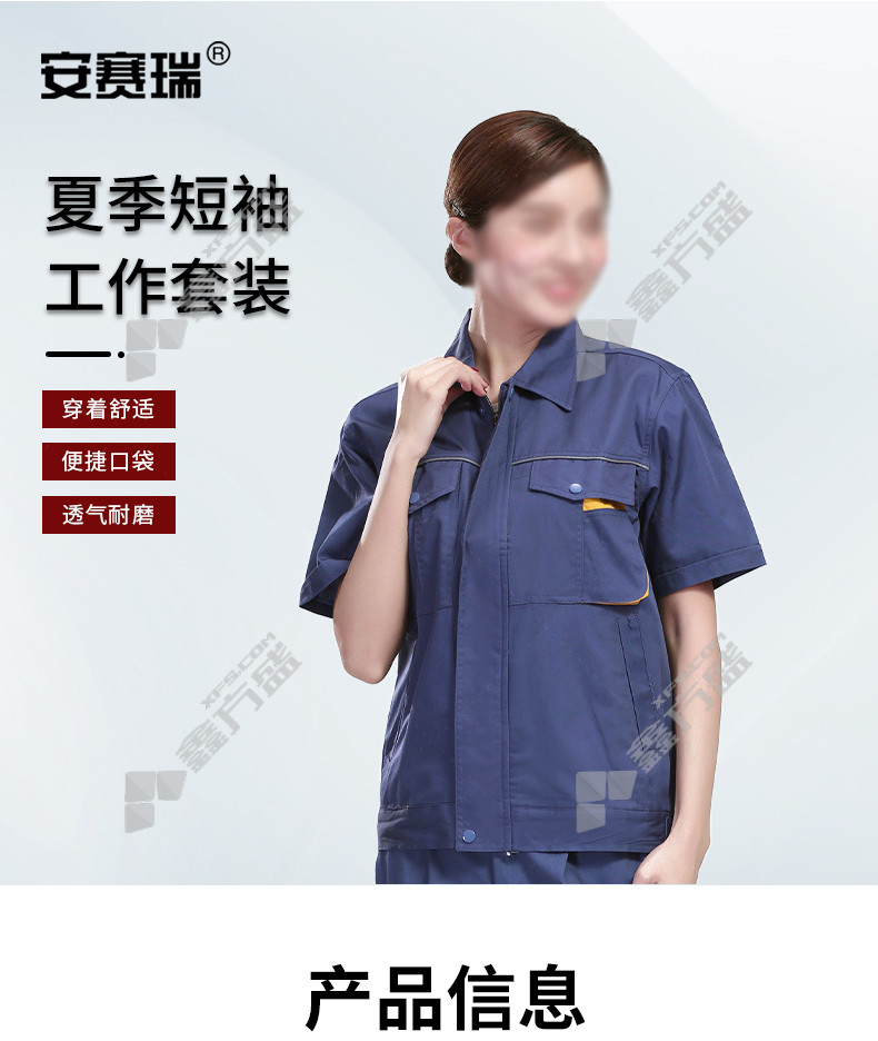 ansery summer short-sleeved work clothes with reflective strips suit 3 F00430 180 code navy blue 3 F00421/165code /gray blue
