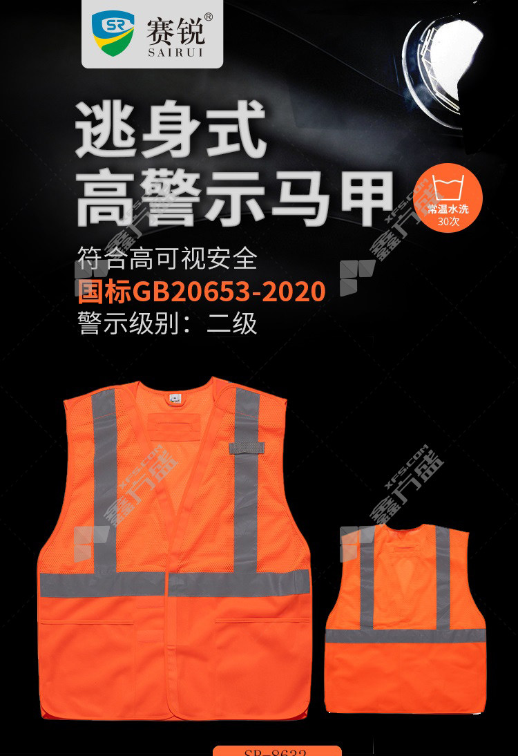 serui SR-8632 escape high warning vest one size fluorescent orange no specifications