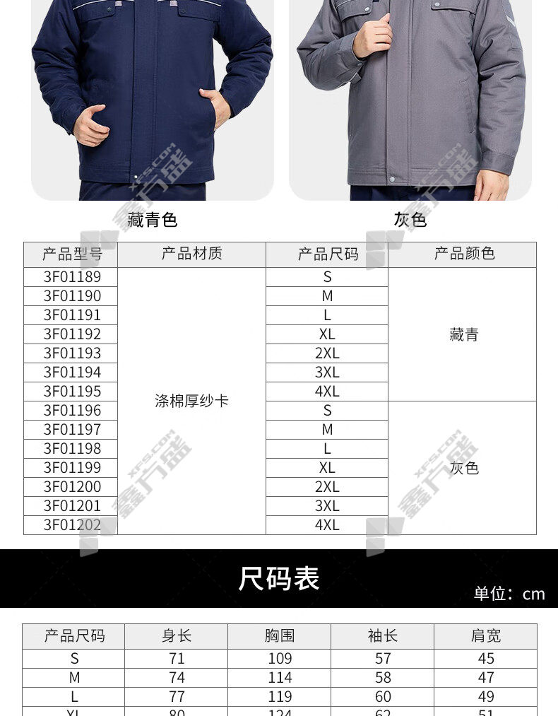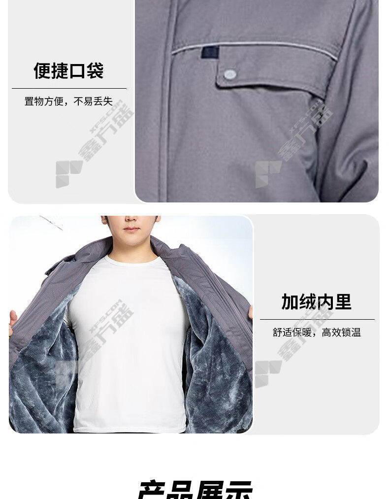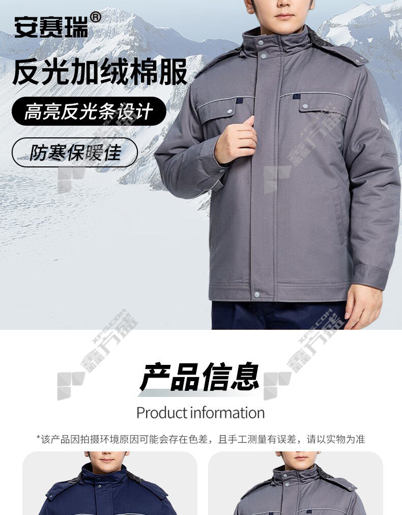 ansery removable lining plus velvet reflective cotton work clothes 3 F01202 4XL code gray 3 F01196/S code /grey