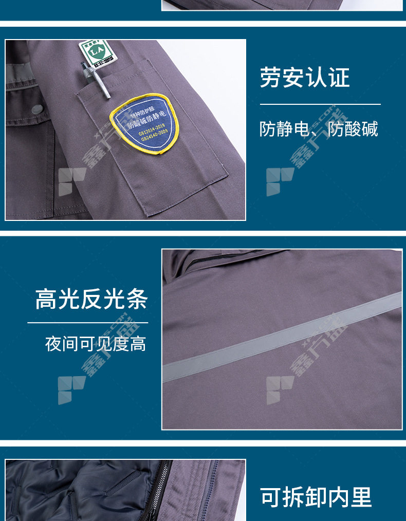 topray T102 removable anti-static, acid and alkali resistant, waterproof cotton clothing in winter 180medium gray 160/medium gray