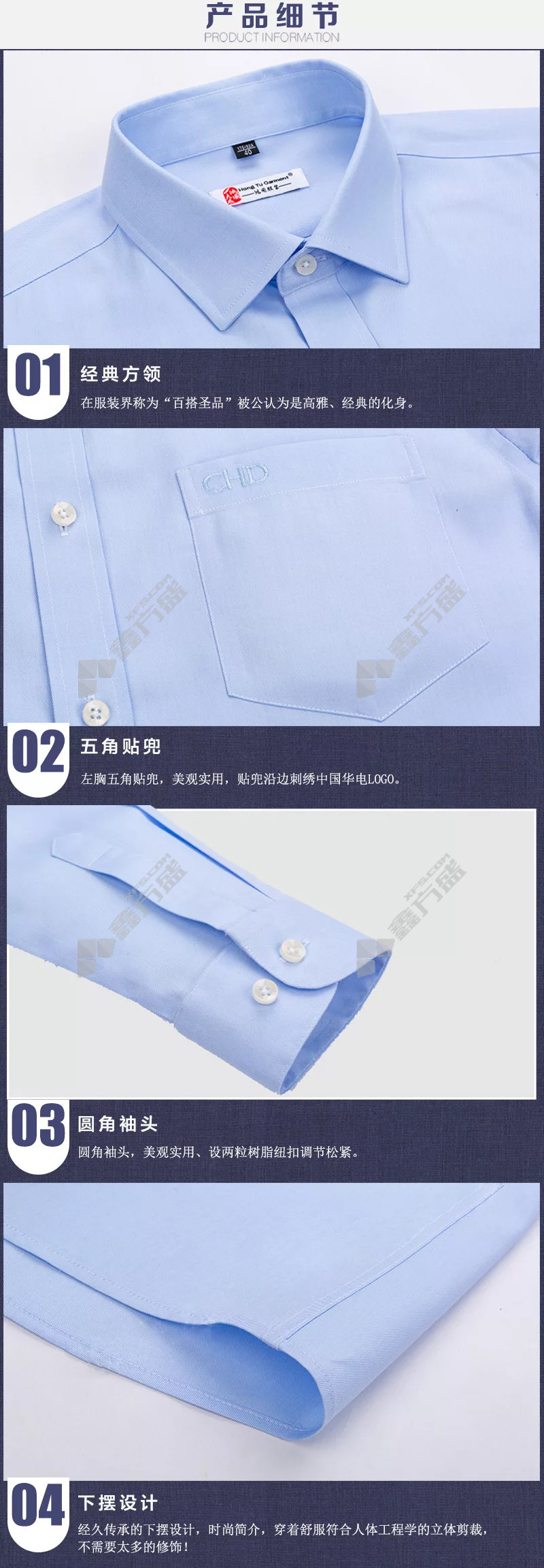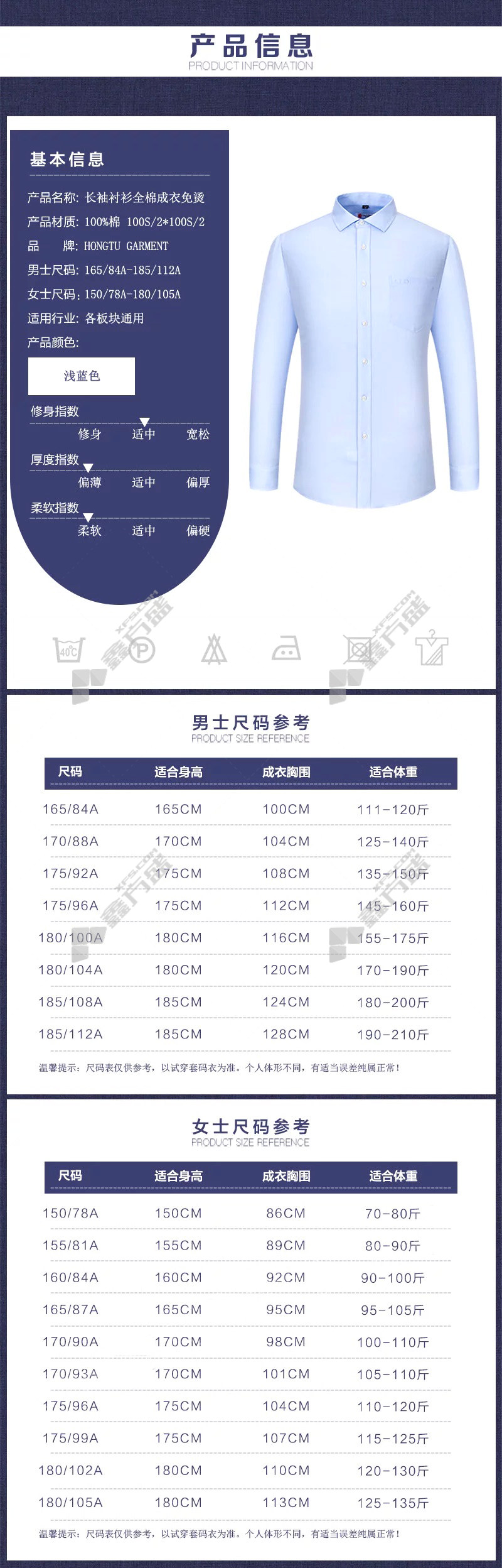 xinyi HONGTU GARMENT women's long sleeve cotton work clothes shirt ZKH-DXCY 150/78A light blue no specifications