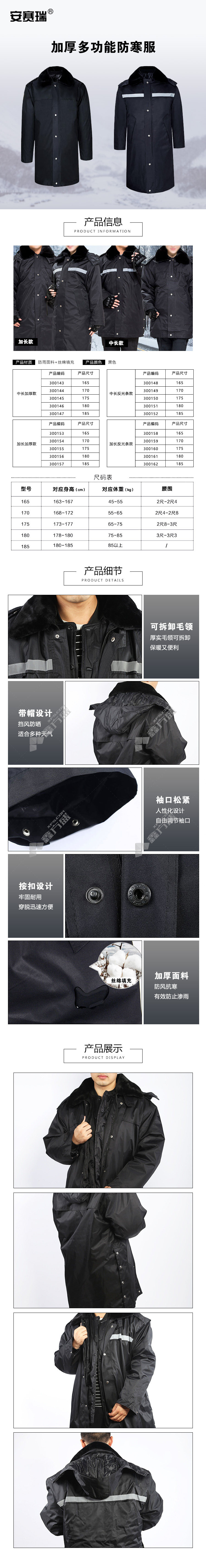 ansery black extended and thickened multifunctional cold-proof clothing with reflective strips 300160 black 175code 300158/black /165code