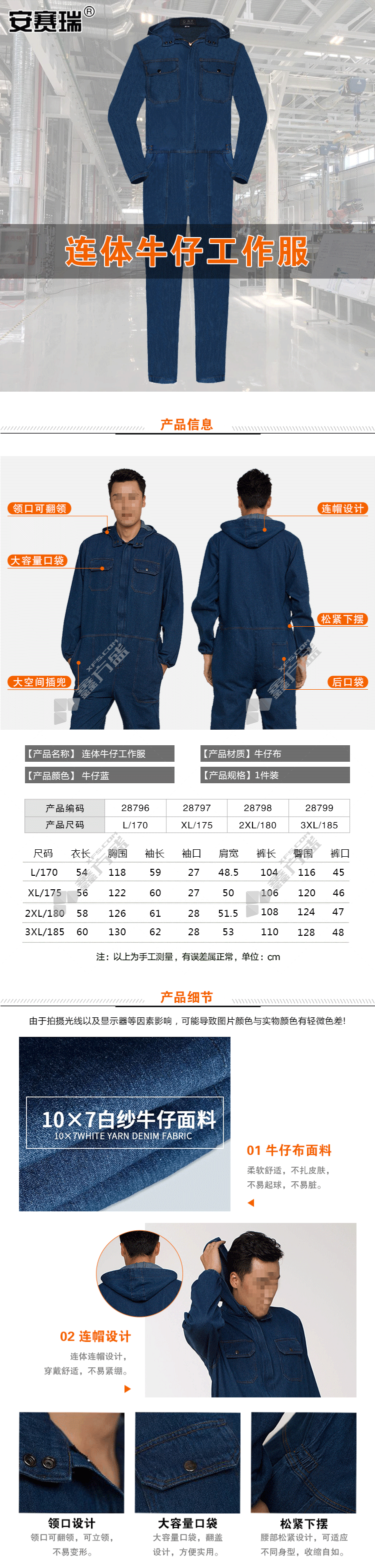 ansery one-piece denim overalls 28796 L code denim blue 28796/L code /denim blue