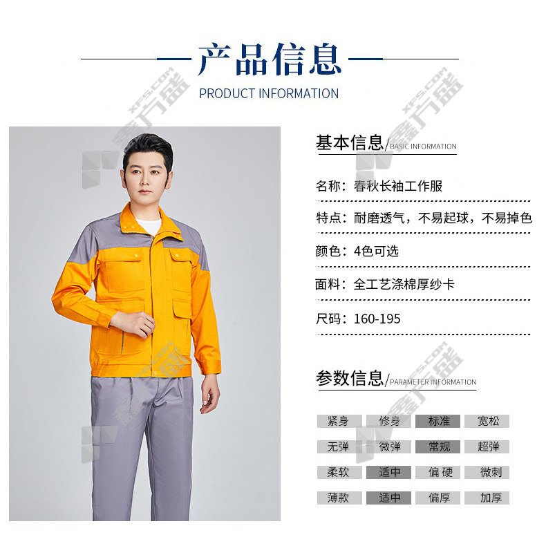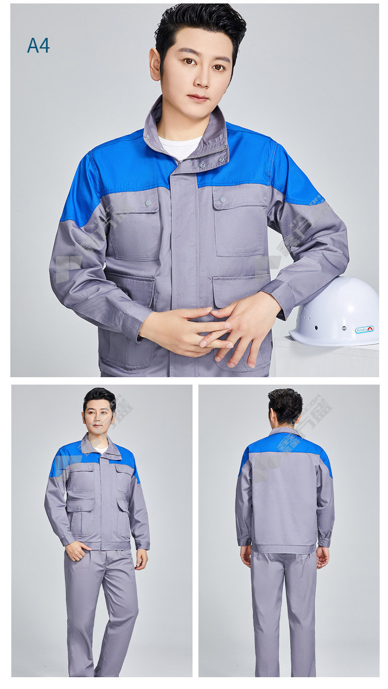 topray A4 spring and autumn full-craft polyester-cotton thick gauze overalls 185 blue and gray 160 /blue and gray
