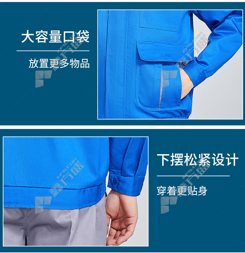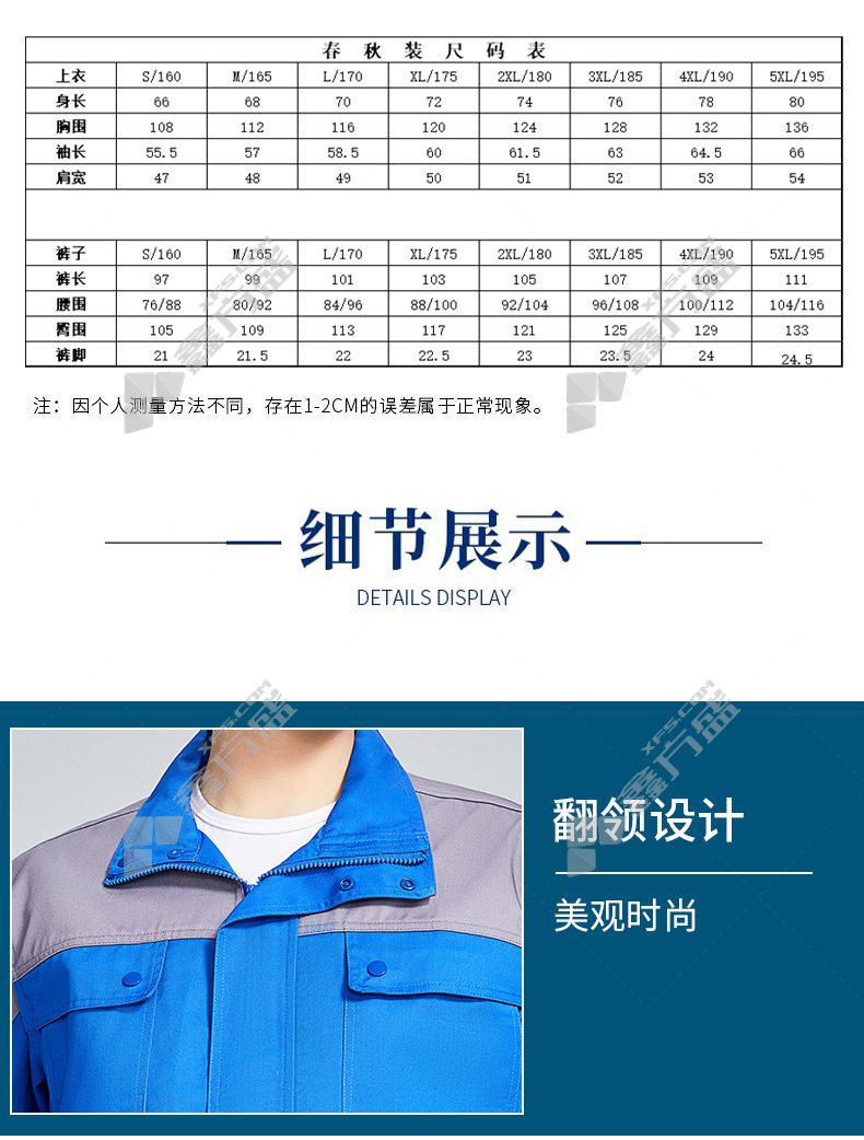 topray A3 spring and autumn full-craft polyester-cotton thick gauze overalls 175gray and blue 160/gray and blue