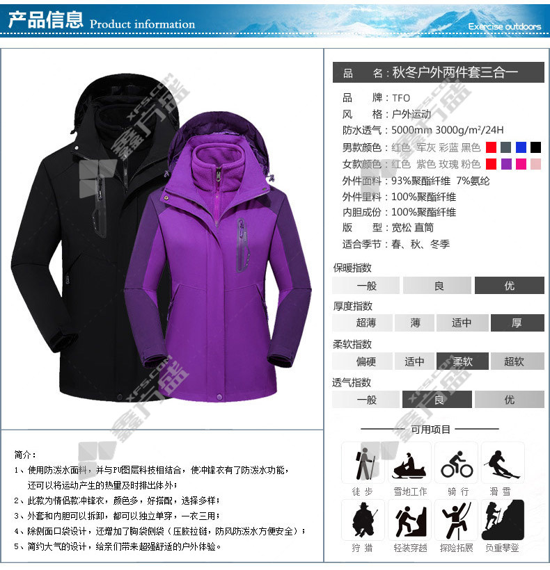 TFO autumn and winter outdoor two-piece set of three-in-one windbreaker jacket XXL code L code
