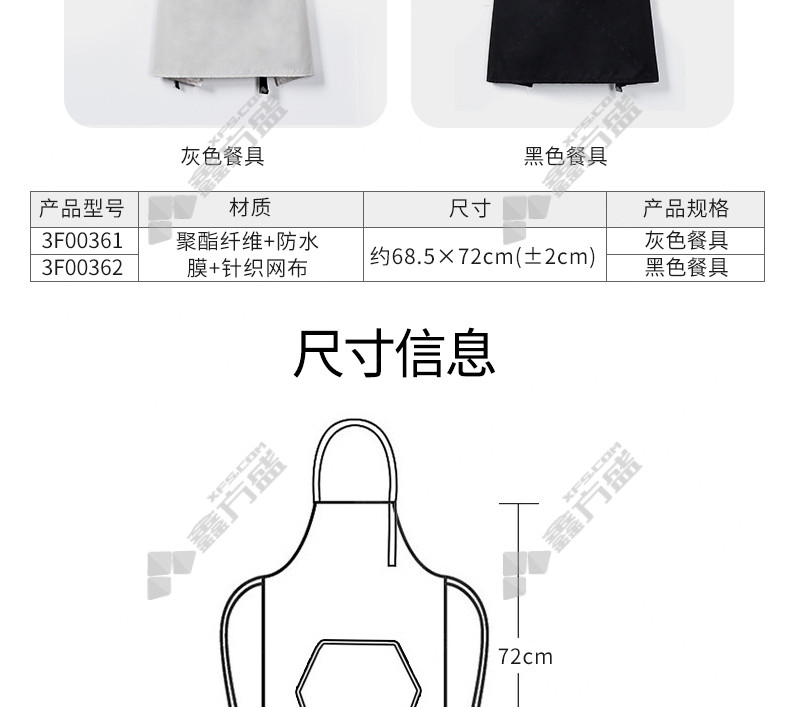 ansery waterproof fashion apron 3 F00362 about 38.5 *72cm black tableware 3 F00361/ about 38.5 *72cm/gray tableware