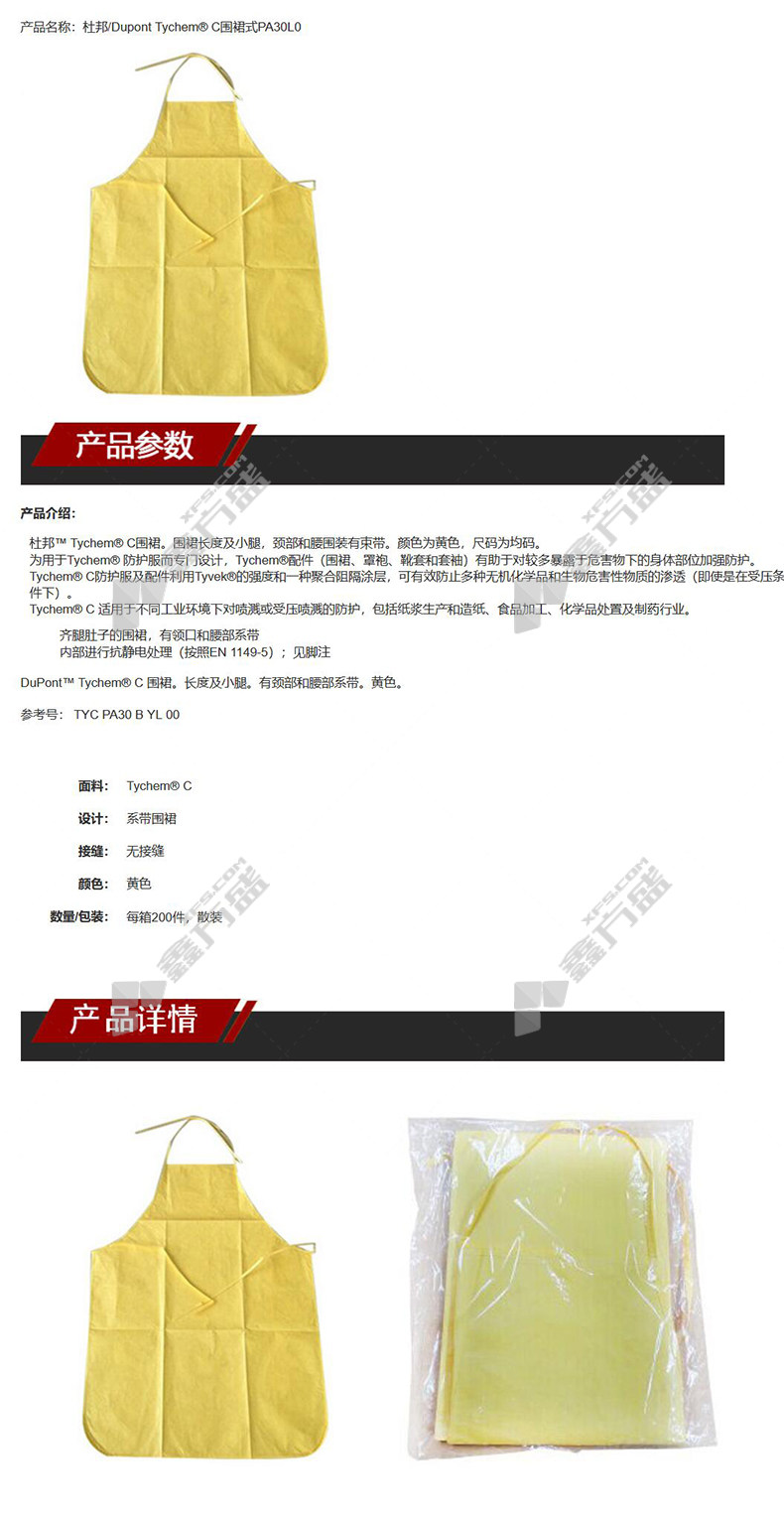 dupont TYCHEM-C apron 70 *95 one size fits all yellow no specifications