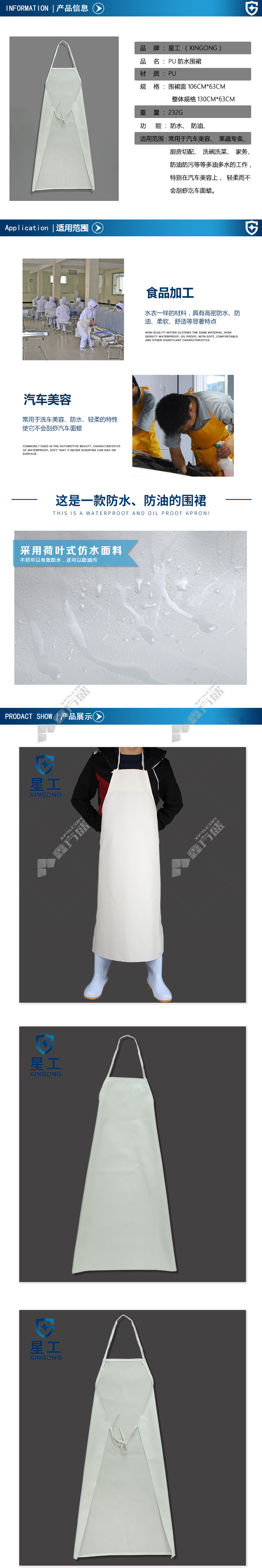 xinggong waterproof and oil-proof work apron 130 *63cm white XGZ-66 no specifications