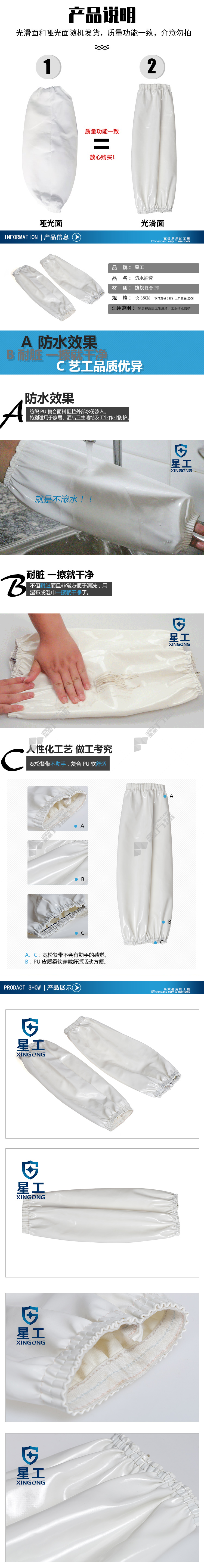 star worker PU leather waterproof and oil-proof sleeves length 38 cm white XGZ-67 no specifications