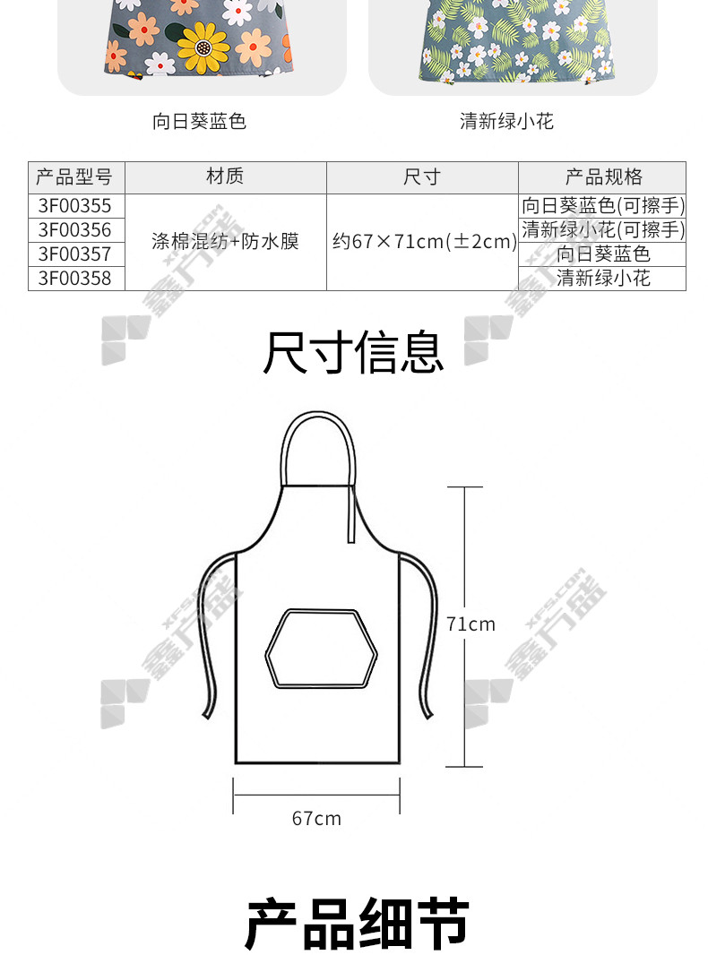ansery 3 F00356 hand-wipeable halterneck printed apron 3 F00356 about 67 *71cm fresh green flowers without specifications