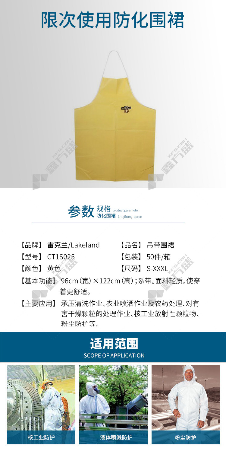 lakeland chemical resistant lace-up suspender apron CT1S025 one size fits all CT1S025 no specifications
