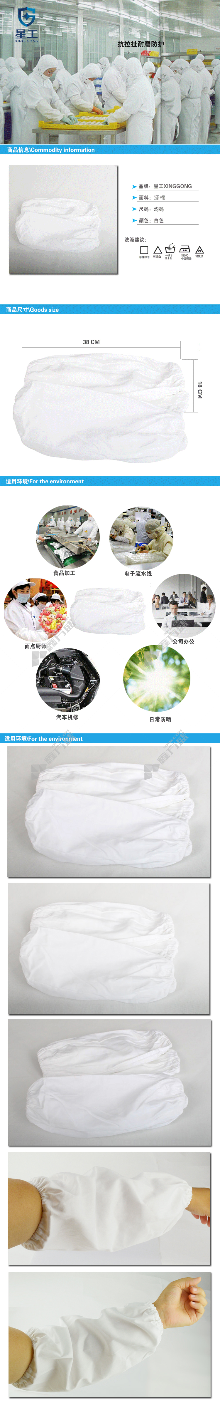 xinggong anti-fouling elastic textile work sleeve 38 *18cm white XGZ-68 no specifications