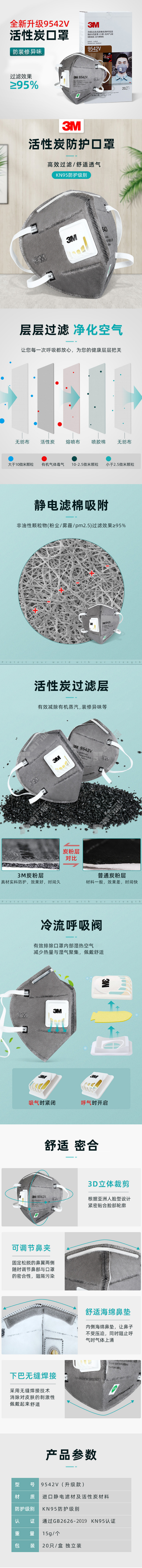 3M 9542V head-mounted activated carbon mask with valve gray head-mounted KN95 no specifications
