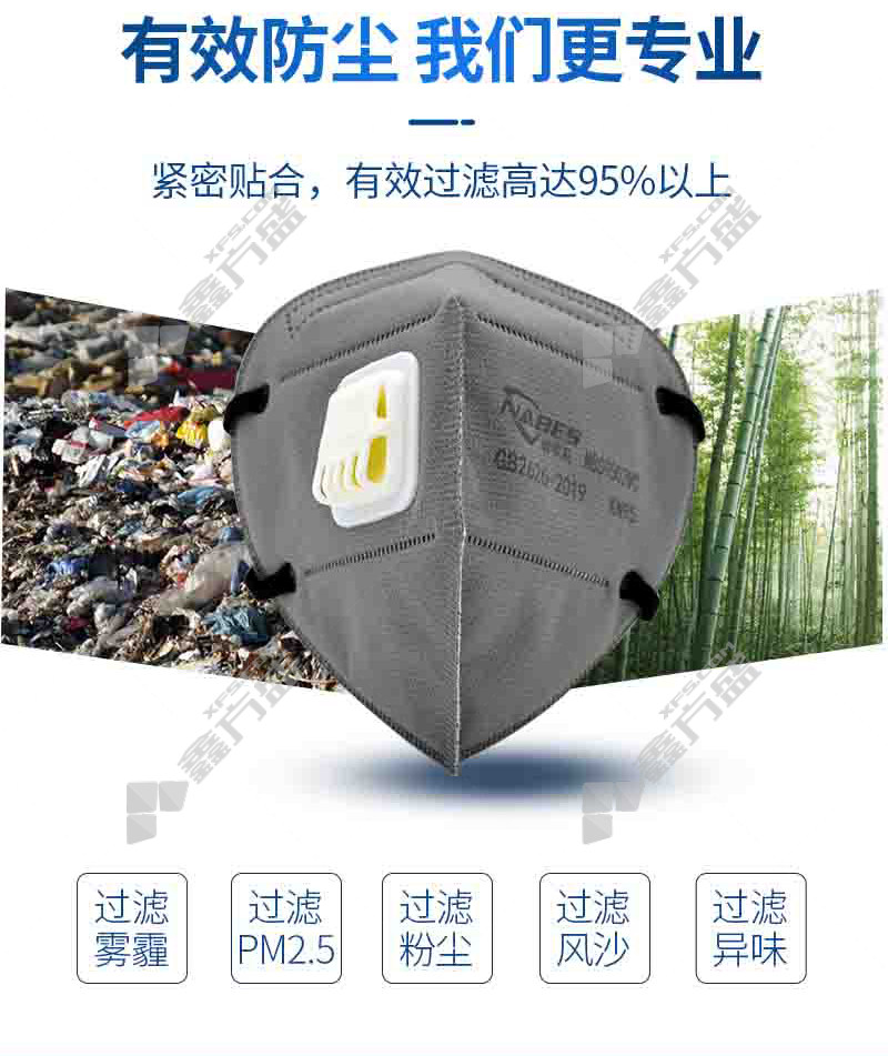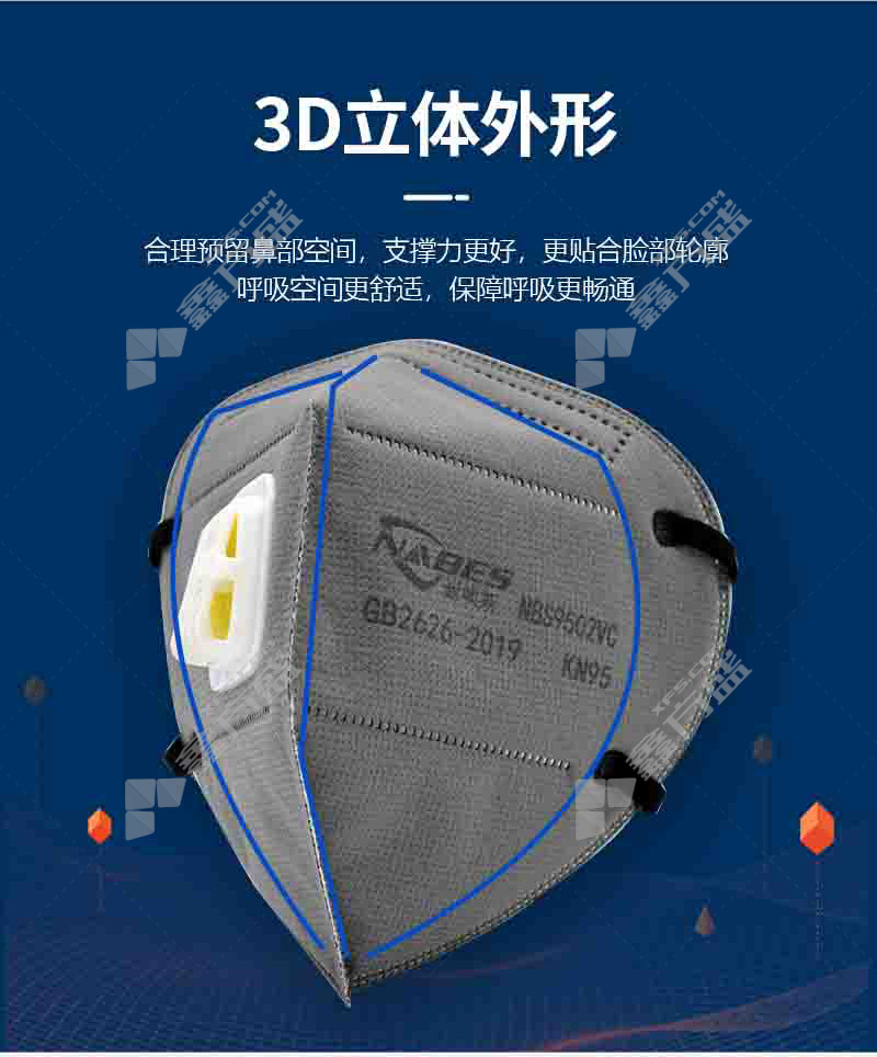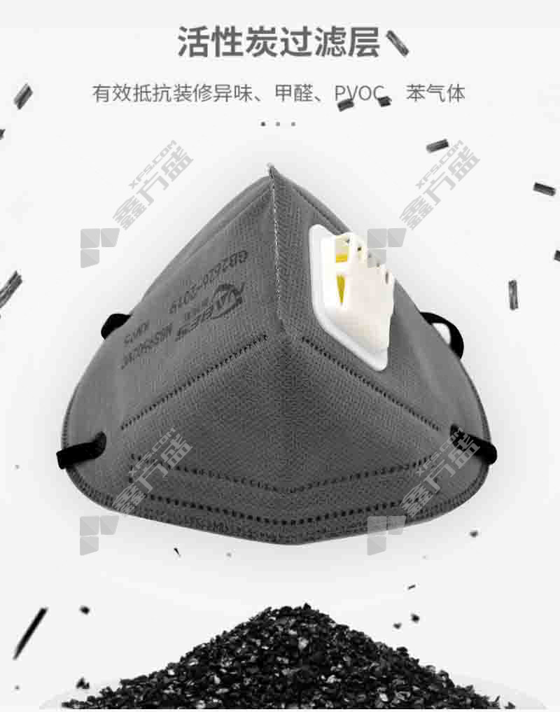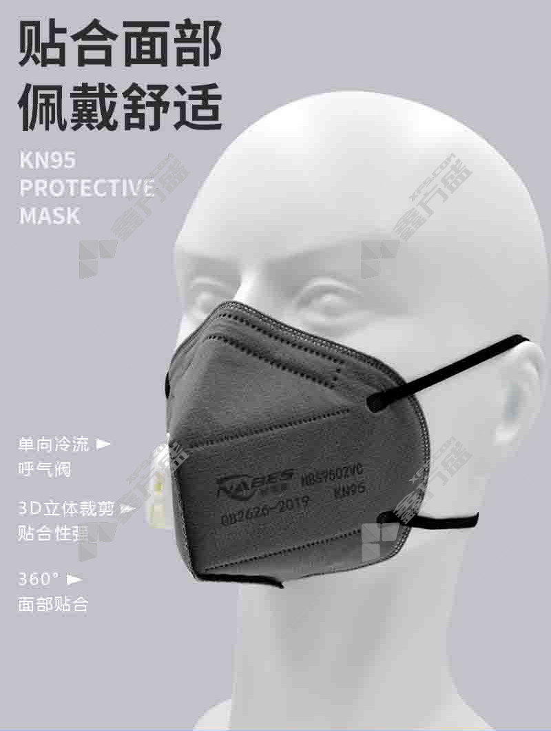 nebis foldable activated carbon headband with breathing valve and inner nose bridge KN95 mask gray NBS9502VC KN95 no specifications