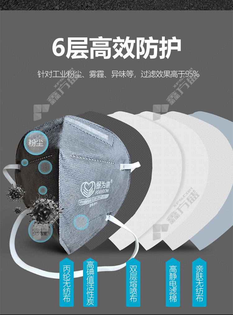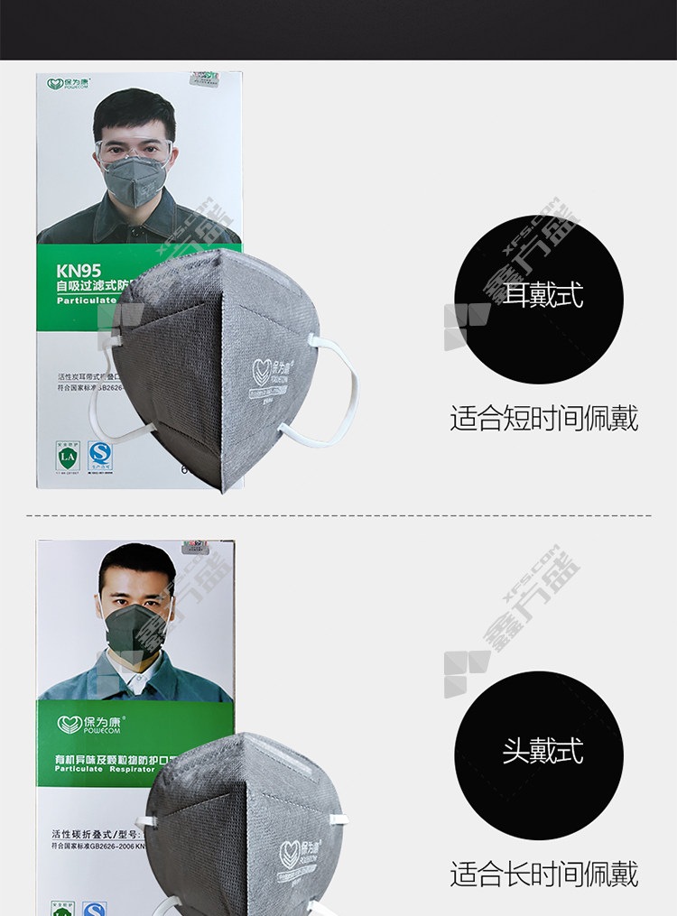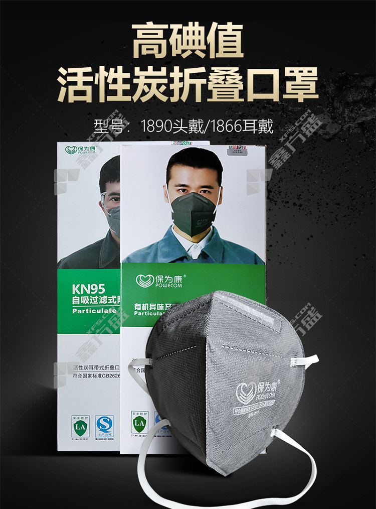 baoweikang gray activated carbon KN95 mask 1890 gray earhook type no specifications