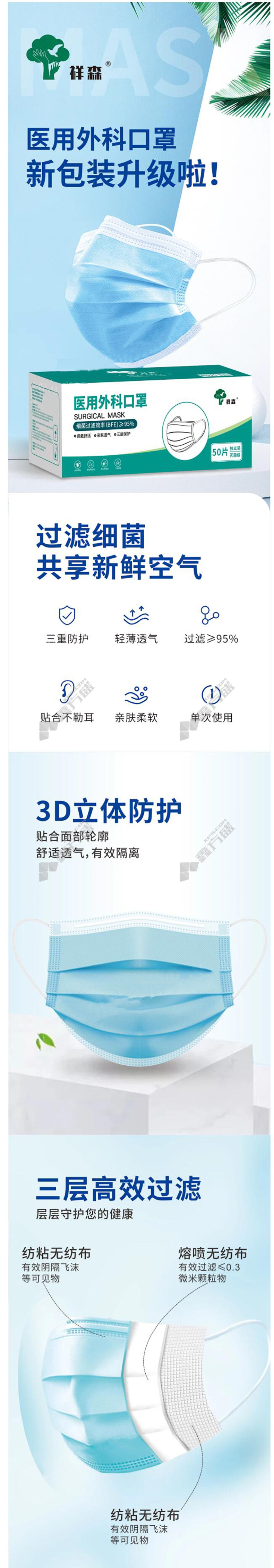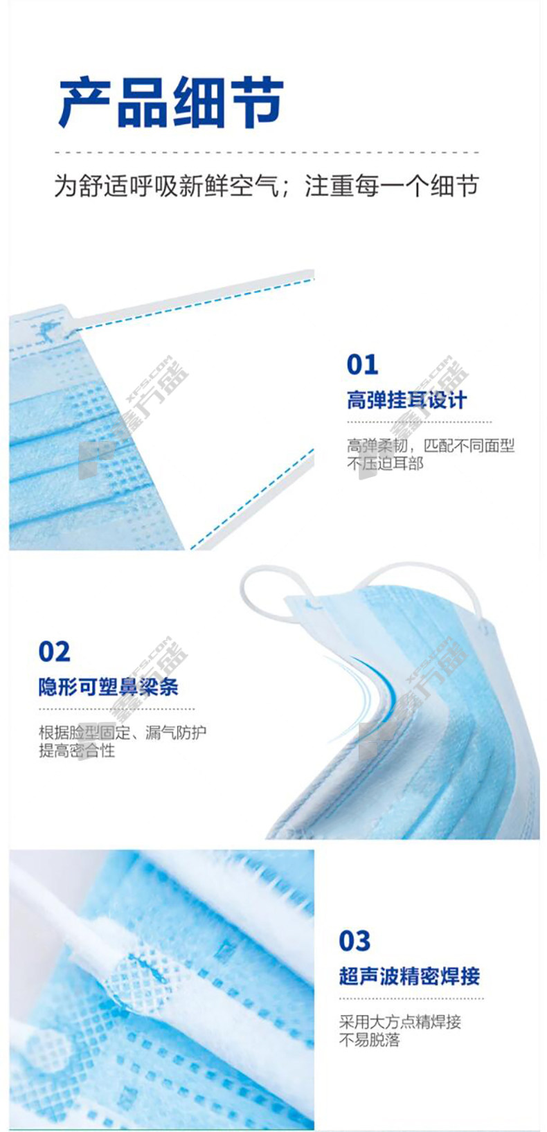 xiangsen disposable non-sterile medical surgical mask blue ear-worn type 50 pieces 1 box blue no specifications