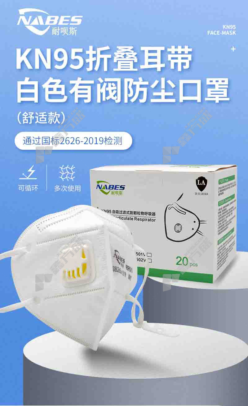 nebis foldable ear strap type with breathing valve inner nose bridge KN95 20 masks in white NBS9501V 20 just install KN95 no specifications
