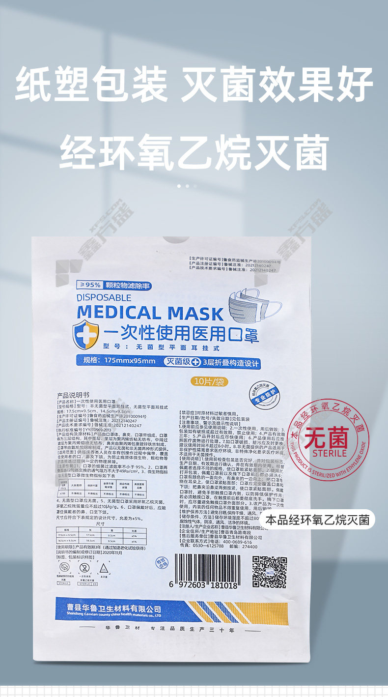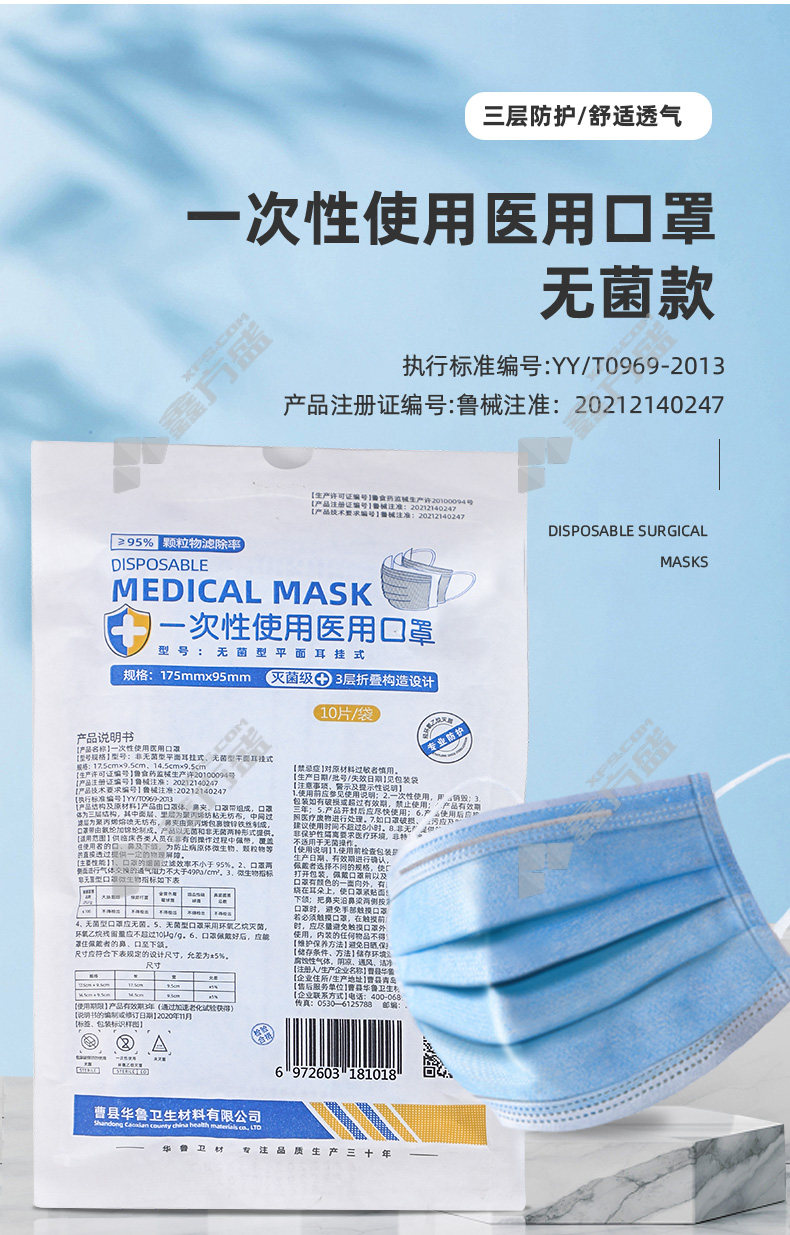 hualu 00807 sterile dustproof disposable medical mask sterilization grade 00807 no specifications
