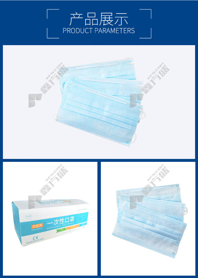 meishidun three-layer disposable masks blue 50 pieces /box blue /10only /bag