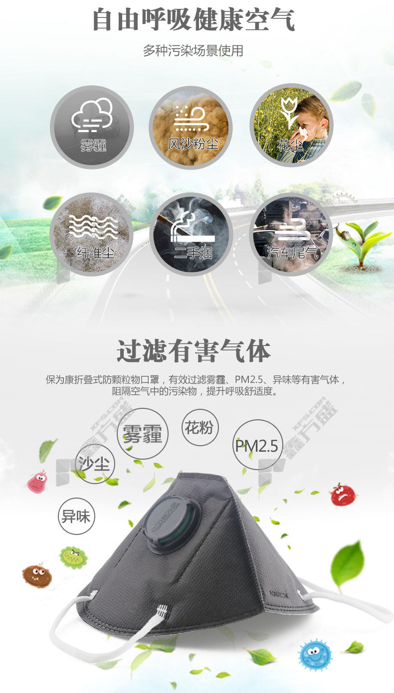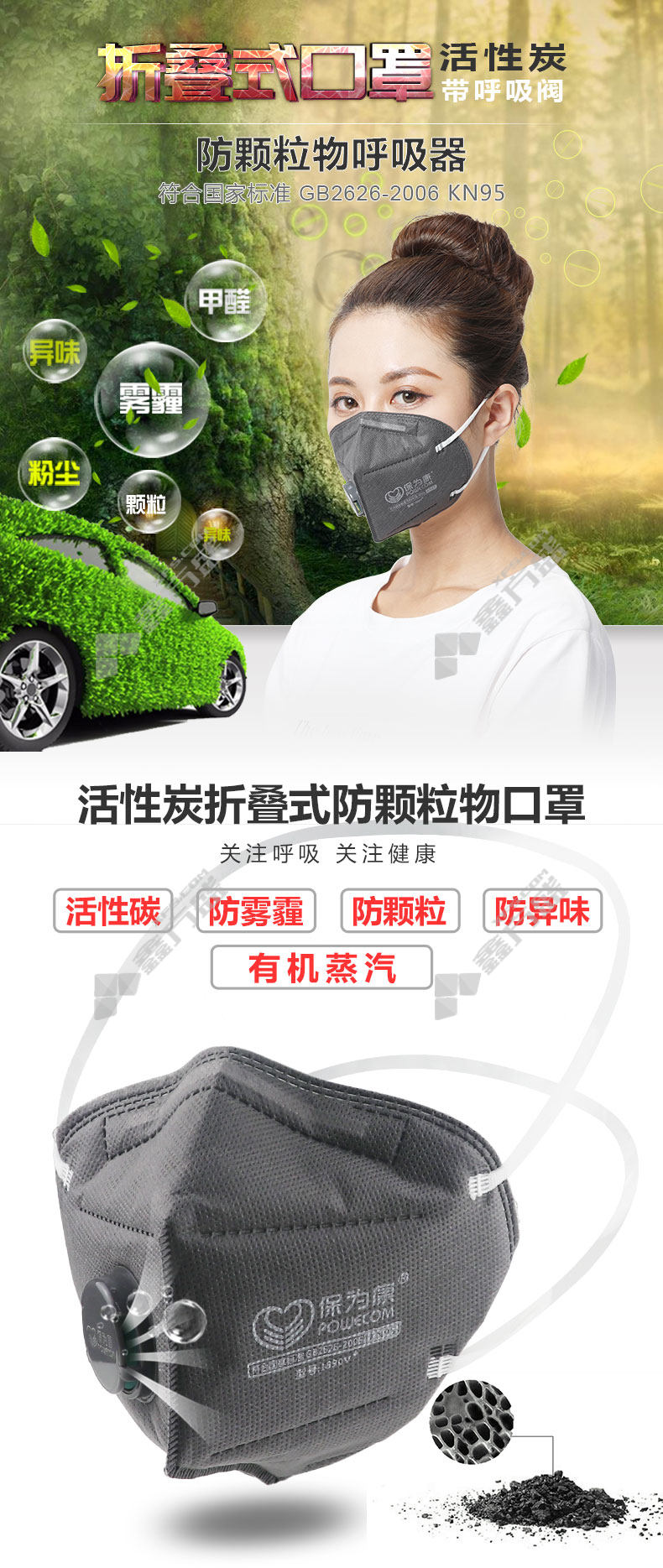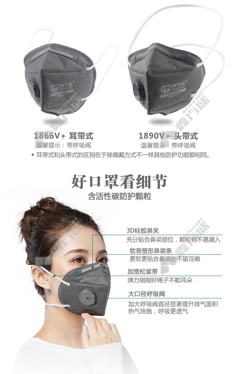 baoweikang folding ear strap type activated carbon with valve KN95 mask 1866 V gray ear hook type no specifications