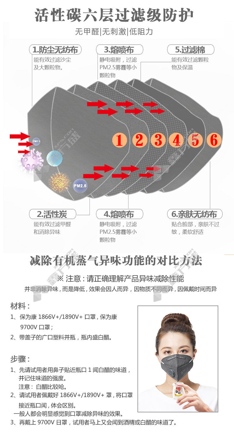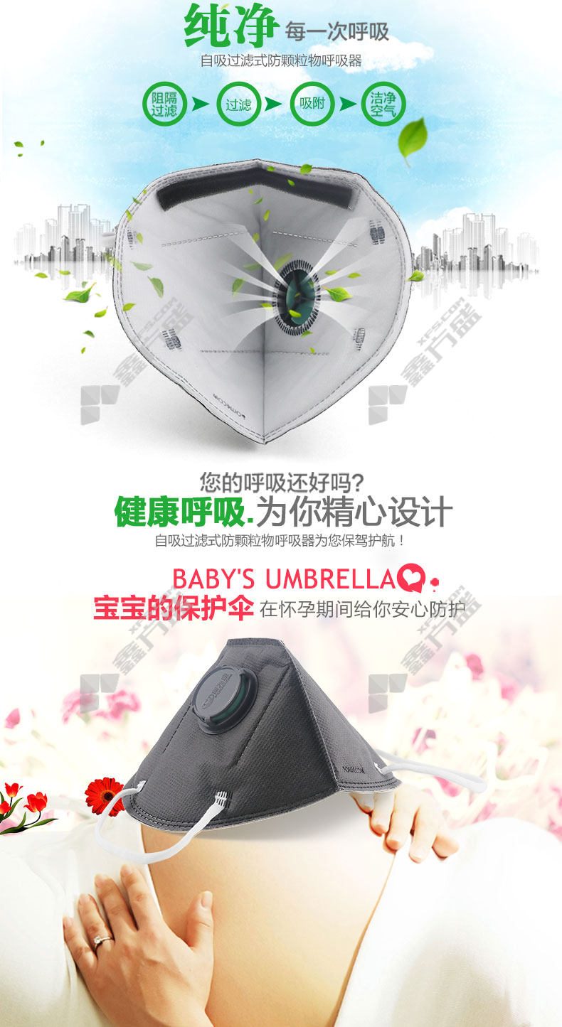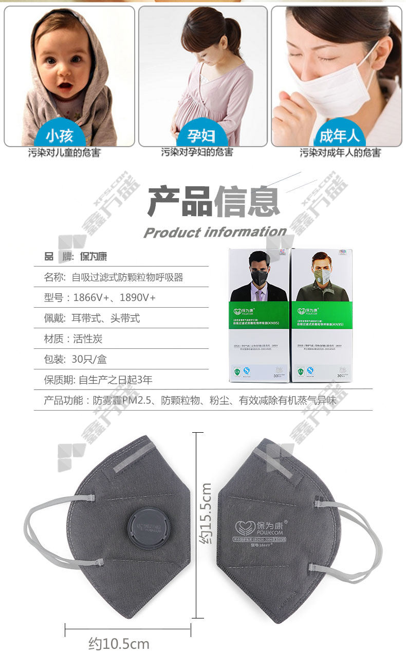 baoweikang folding ear strap type activated carbon with valve KN95 mask 1866 V gray ear hook type no specifications