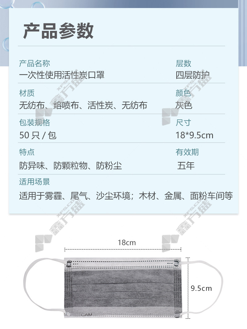 conhp disposable activated carbon mask 18 *9.5cm gray 50 pieces /package has no specifications