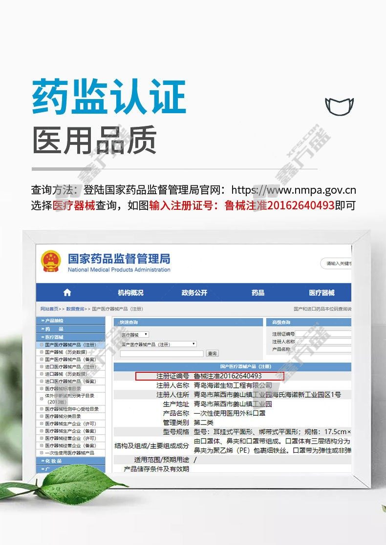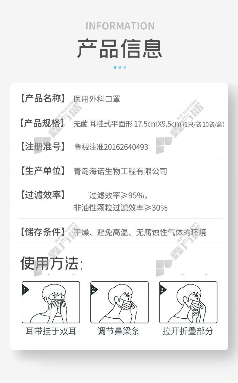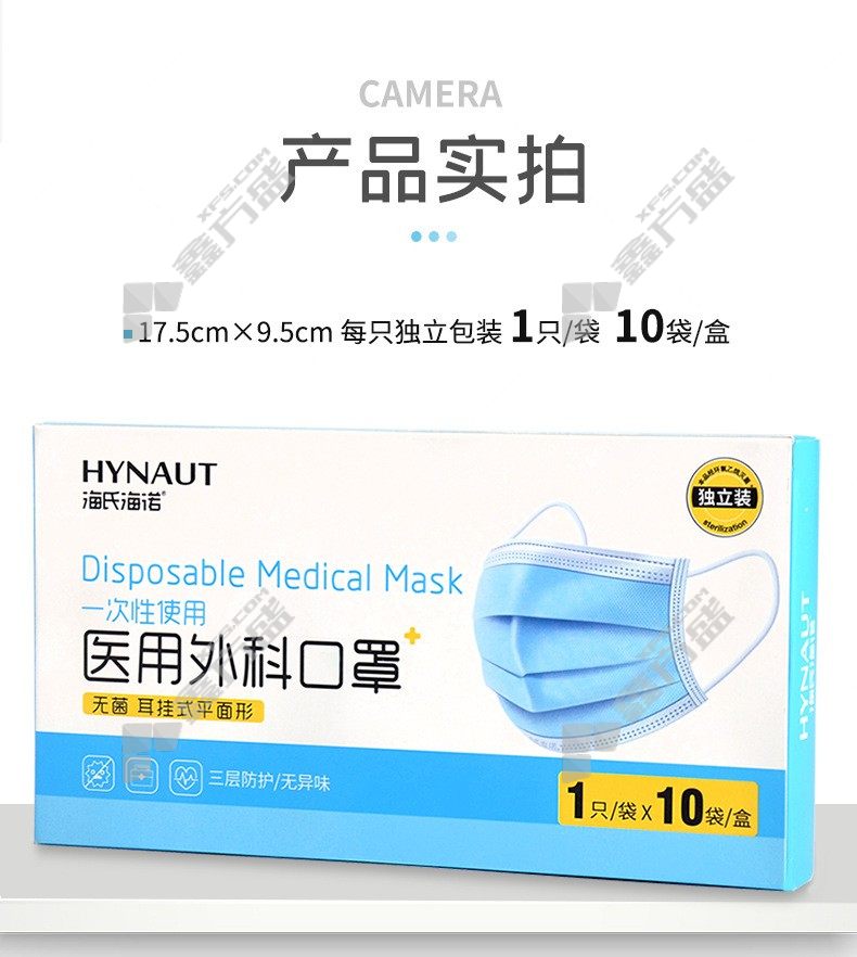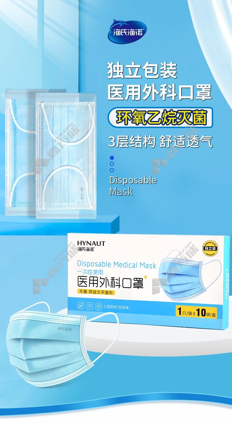 haishi hainuo disposable three-layer medical mask sterile blue ear-mounted no specifications